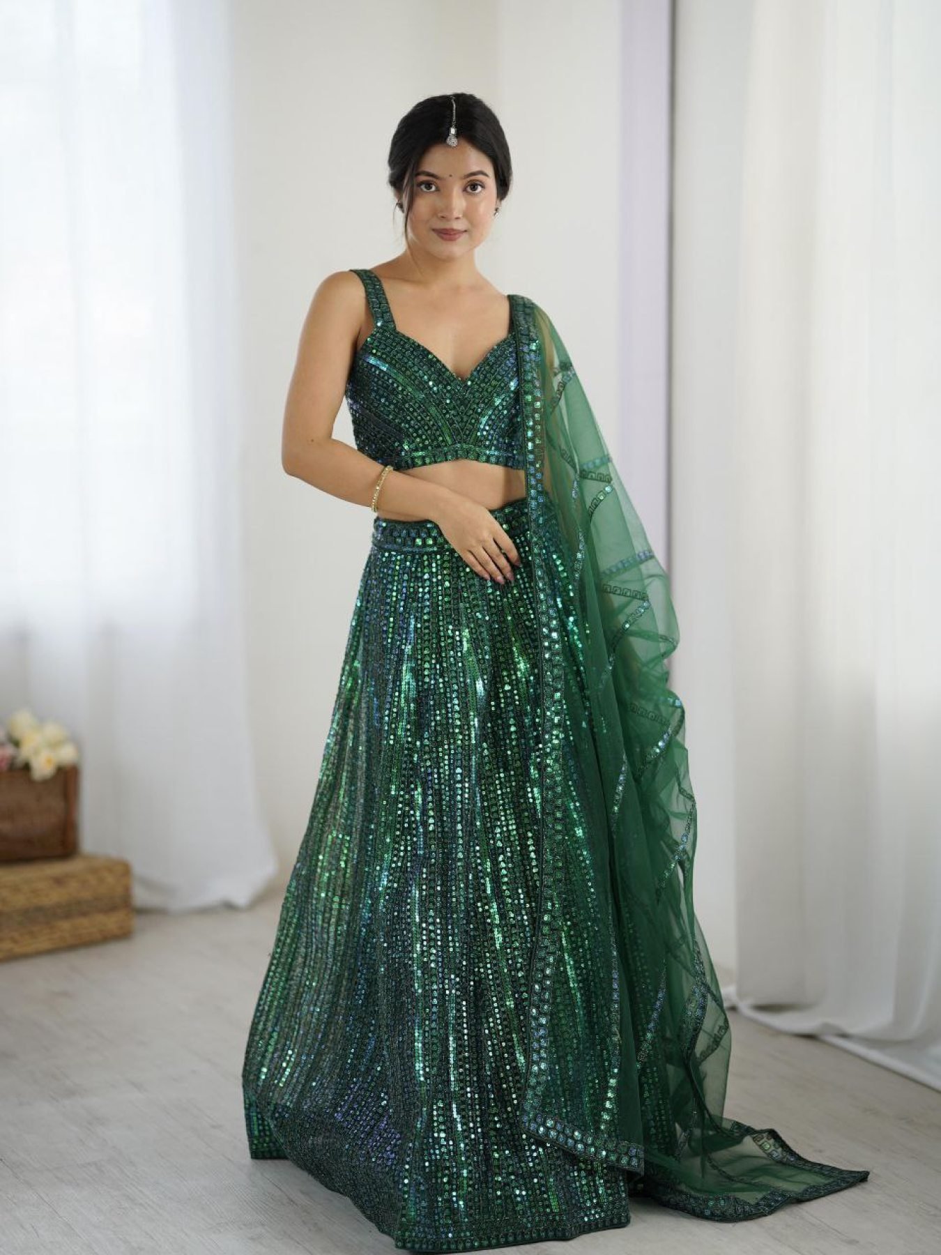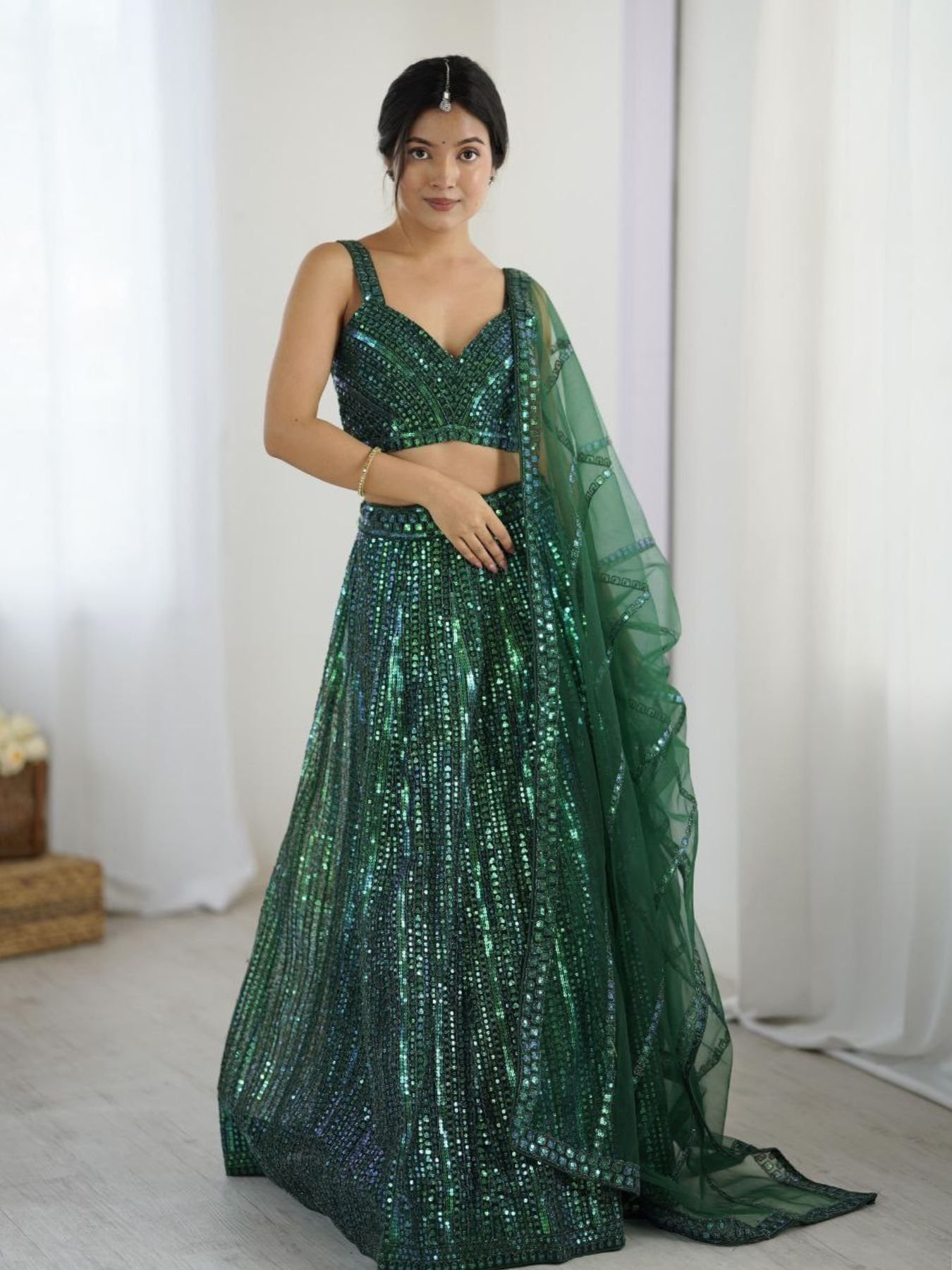 Sparkling Green Net Lehenga Choli with Heavy Sequin Embroidery Party Wear Look