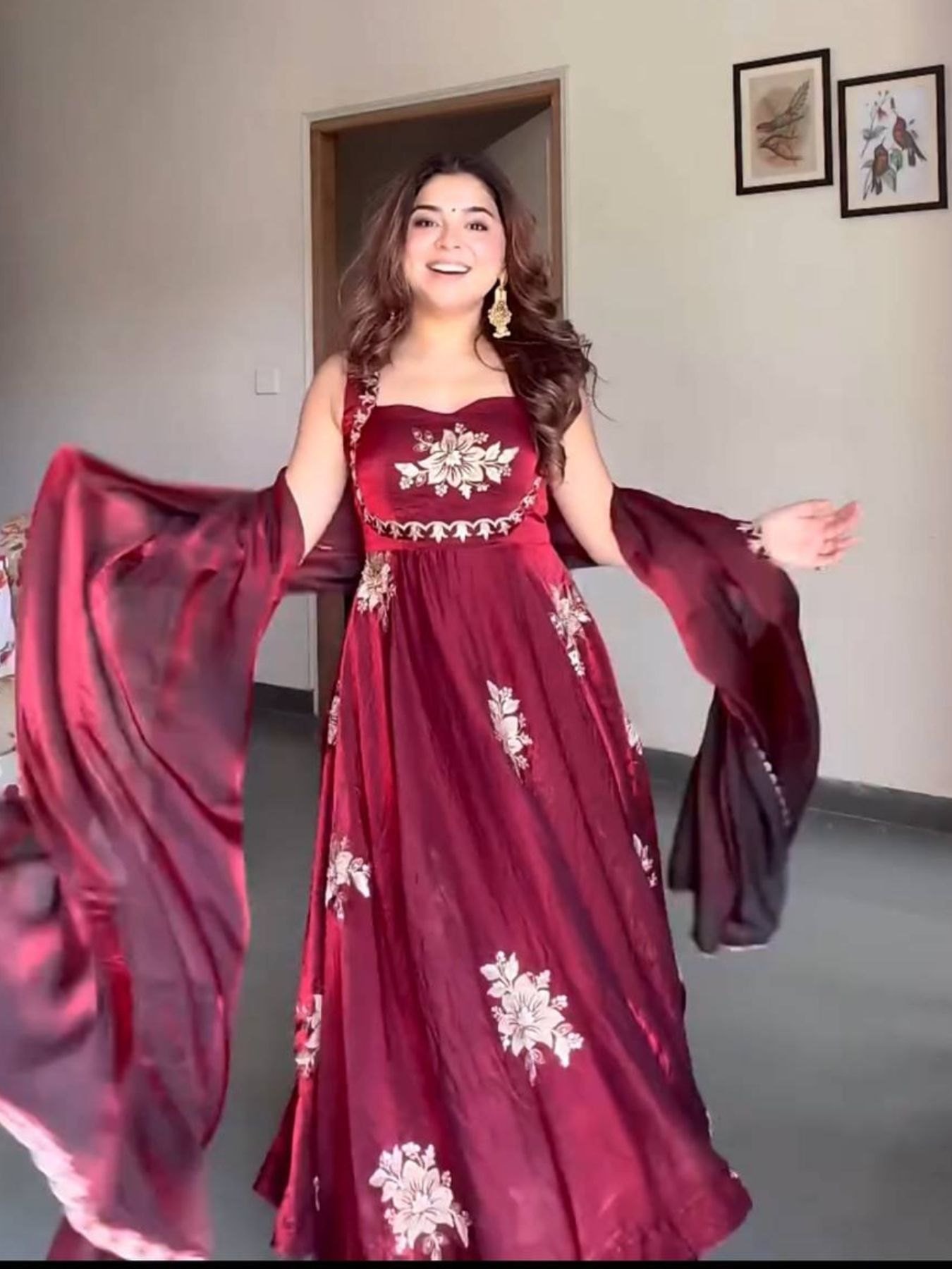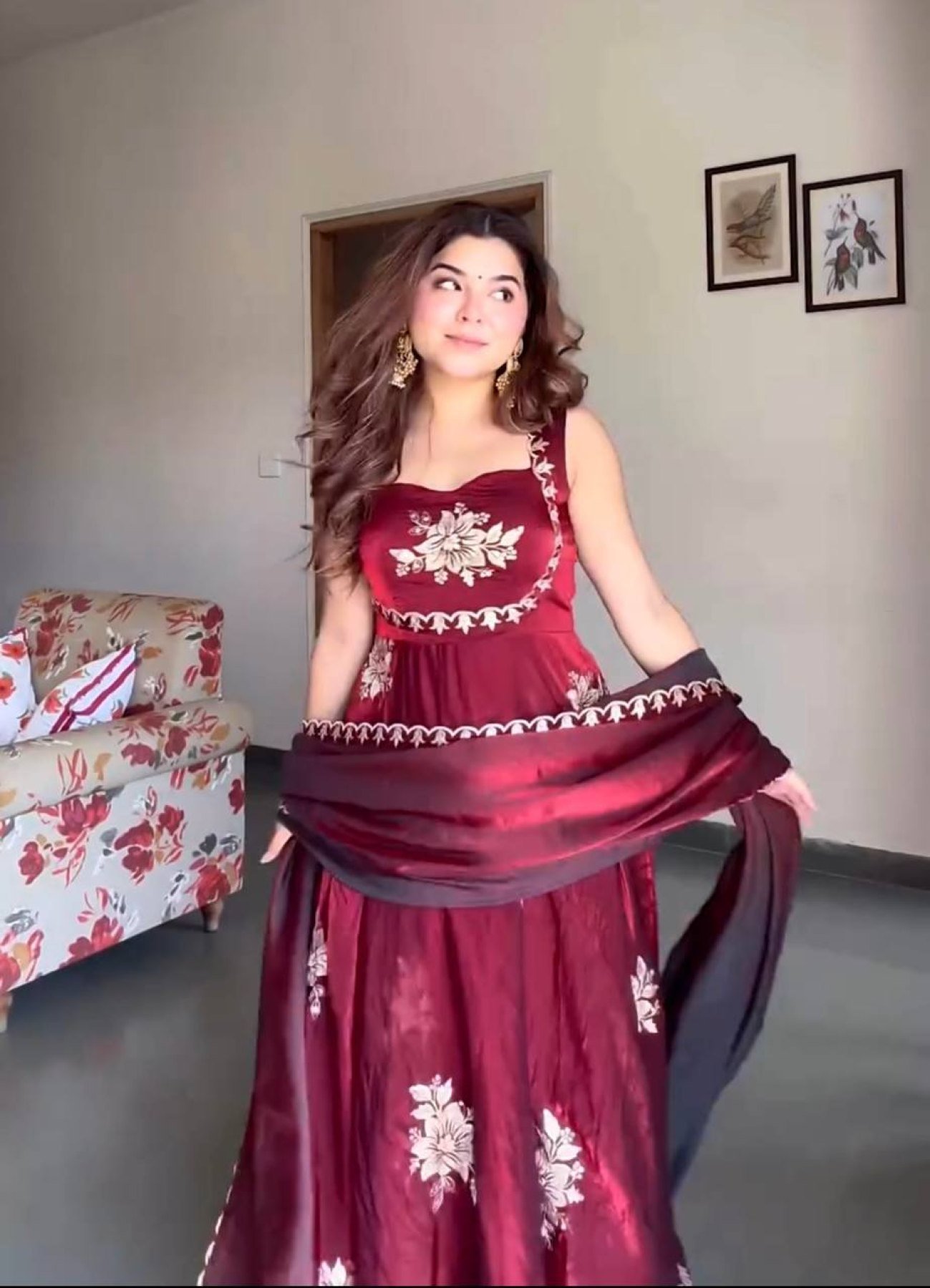 Splendid Maroon Designer Anarkali Suit Set with Dupatta for Wedding Wear