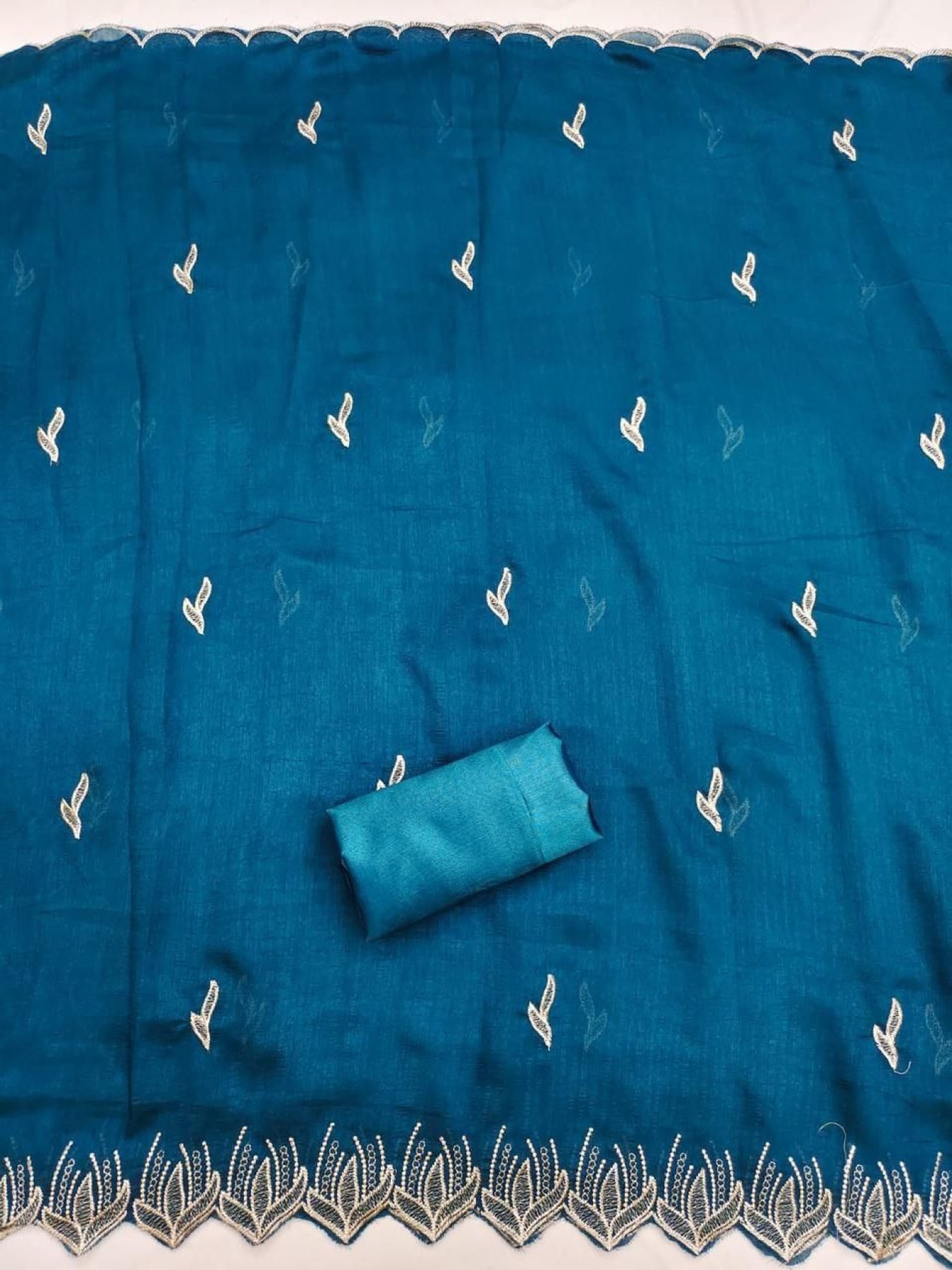 Stunning Blue Vichitra Silk Top With Intricate Embroidery And a Matching Dupatta.