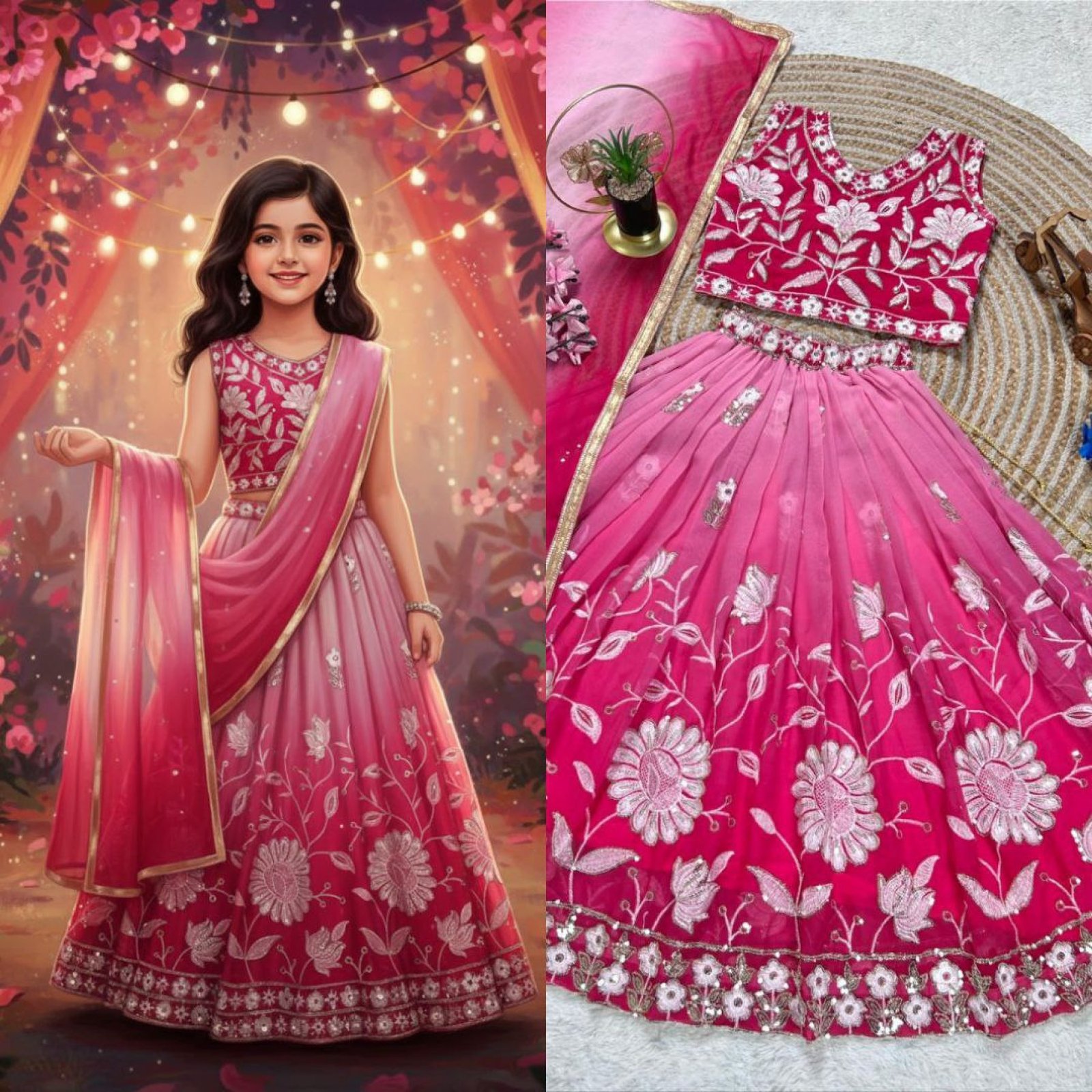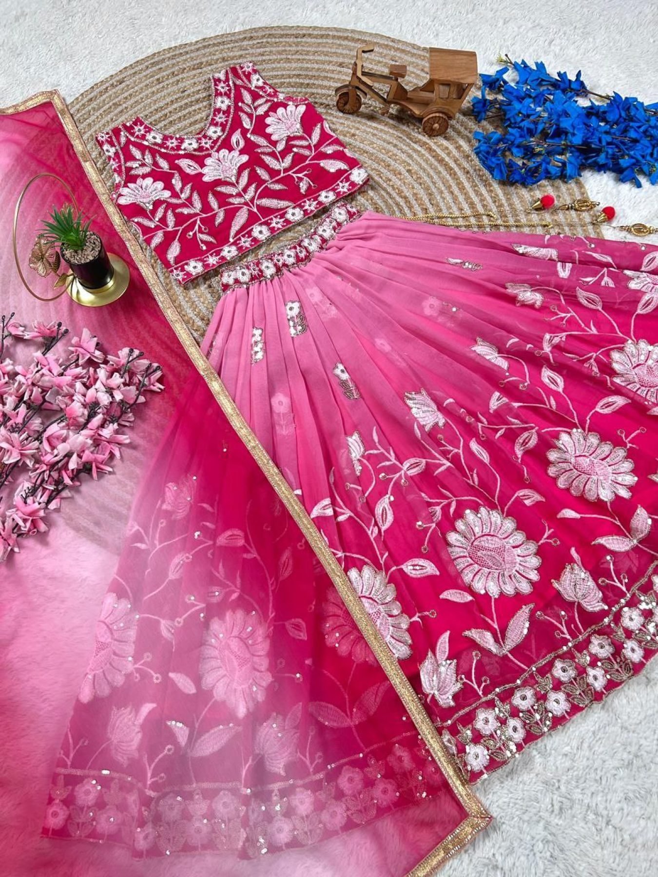 This designer lehenga choli set is crafted in heavy blooming georgette with elegant embroidery sequence work and soft printed lehenga design. Fully stitched choli and lehenga with micro cotton lining ensure comfort with a luxurious festive look. Perfect for wedding events, festive celebrations and party wear collections.