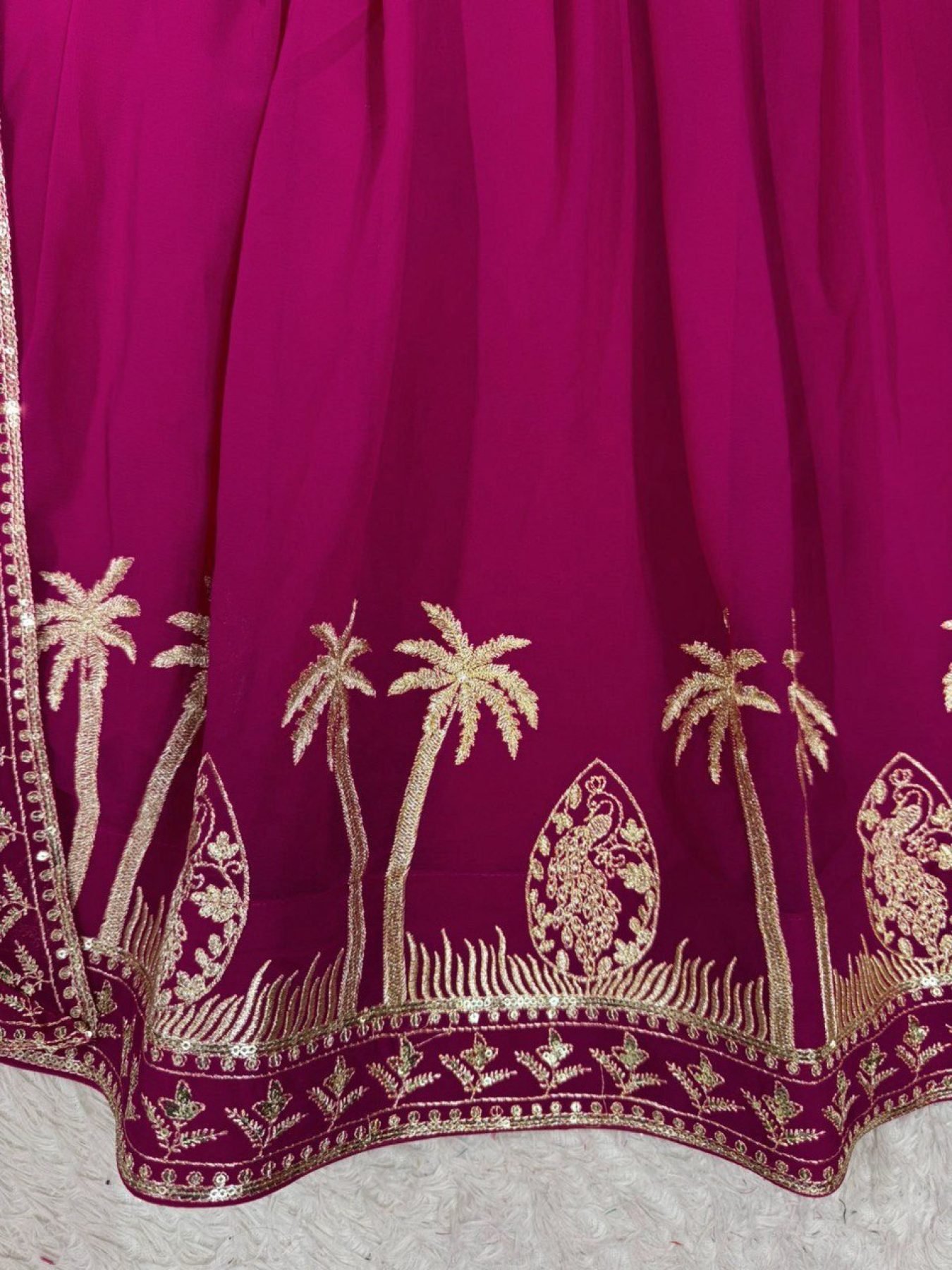 Stunning Pink Front and Back Thread with Embroidery Work Gown with Pant & Dupatta for Wedding Wear