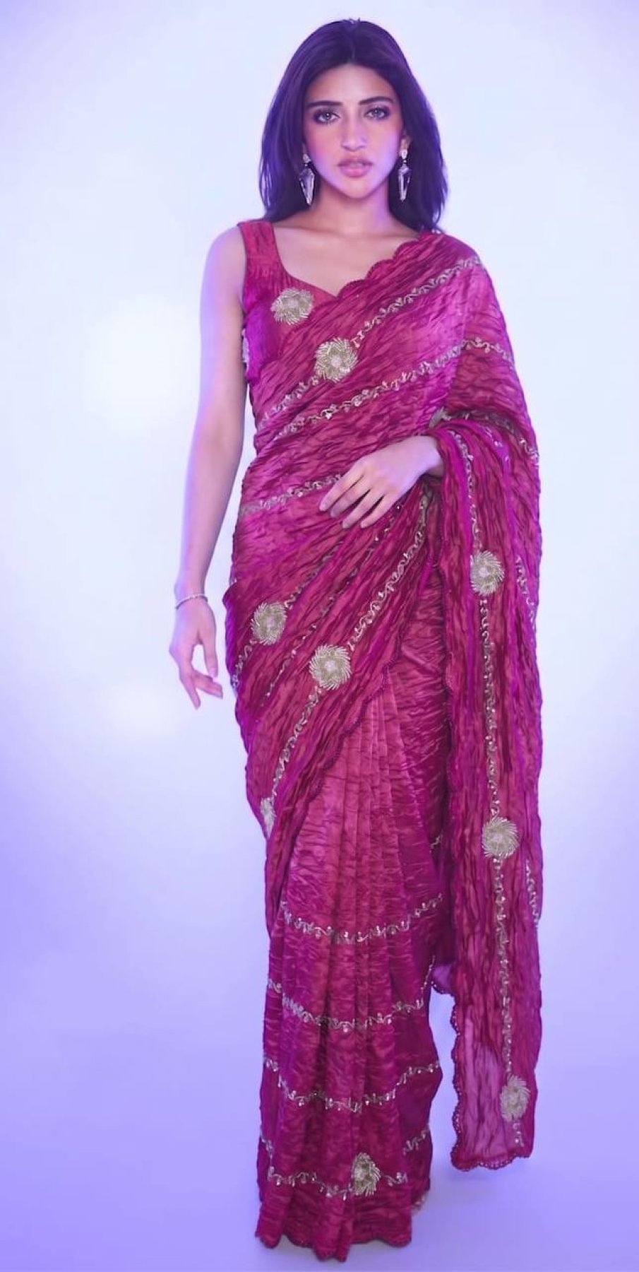 Stunning Pink Latest Fancy Saree with All Over Embroidery Design