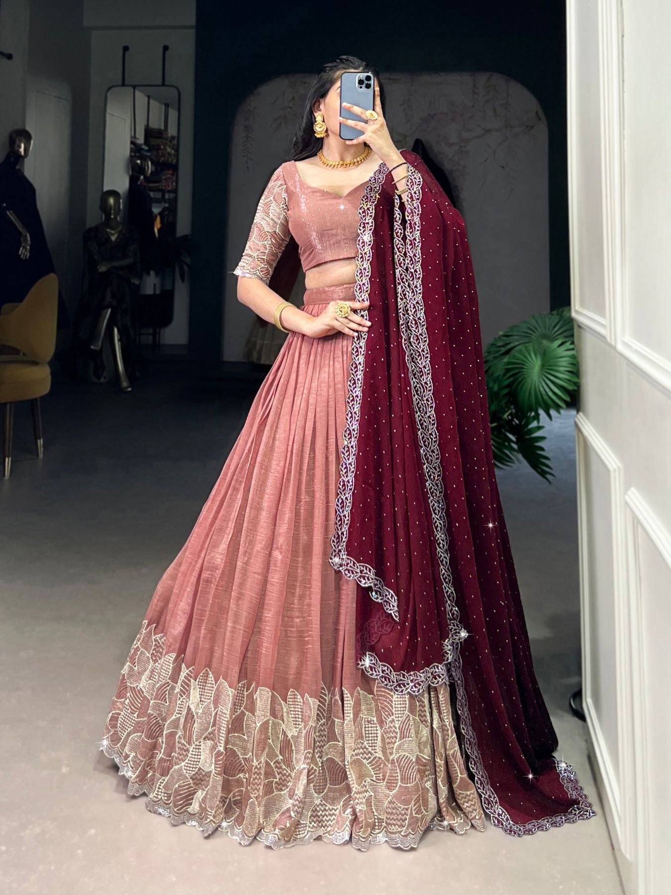 Make a dazzling statement this wedding season with our premium lehenga set, designed for modern elegance and timeless charm.