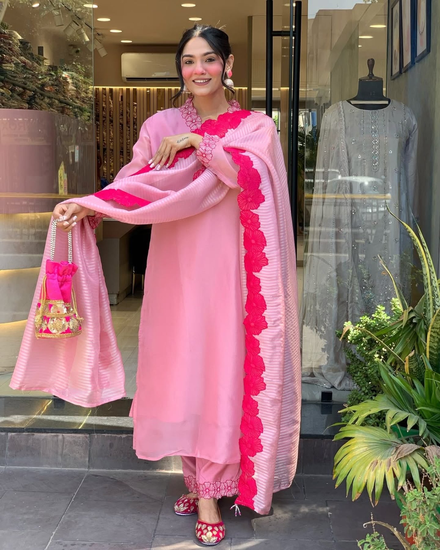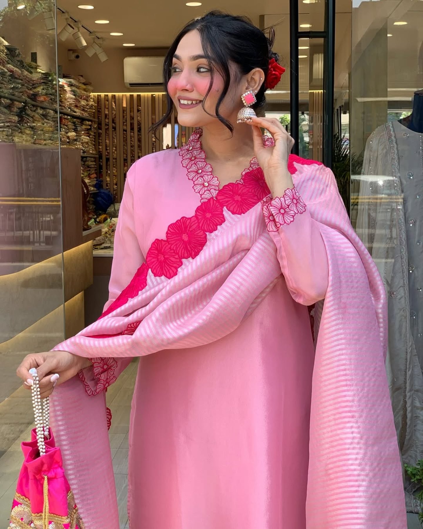 Step into sophistication with this Viscose Chanderi Embroidered Kurta Set, designed to add grace to every occasion. Adorned with intricate embroidery and paired with a soft Chinon dupatta, this set defines elegance and comfort for modern ethnic wear lovers.
