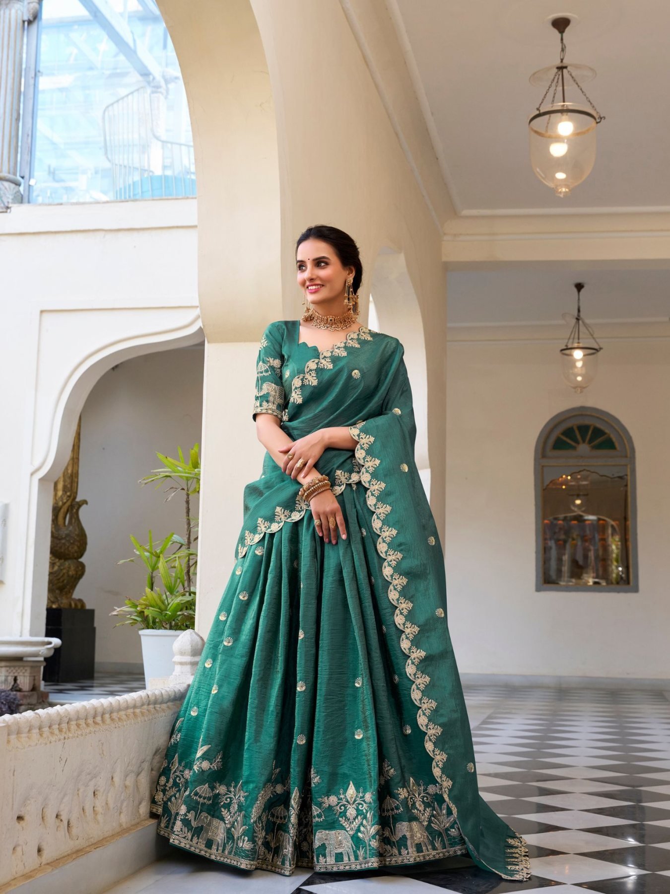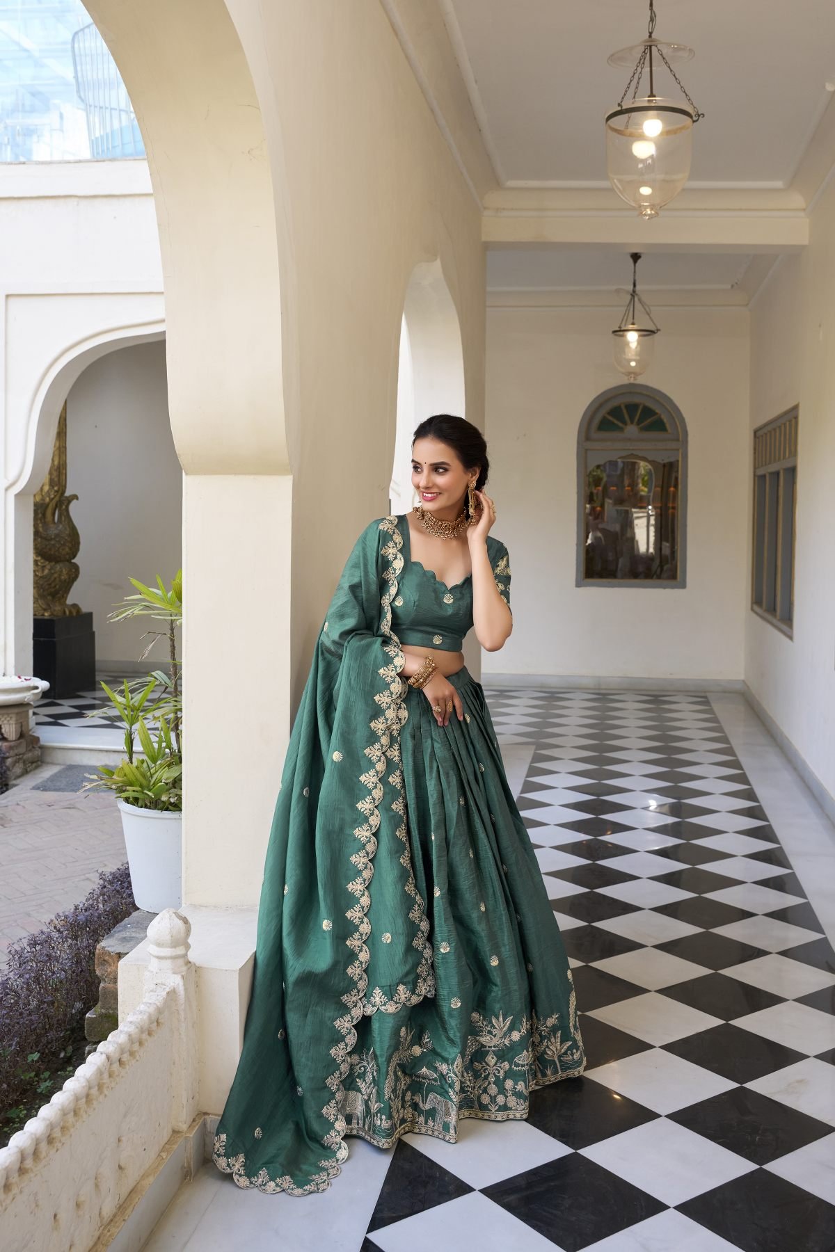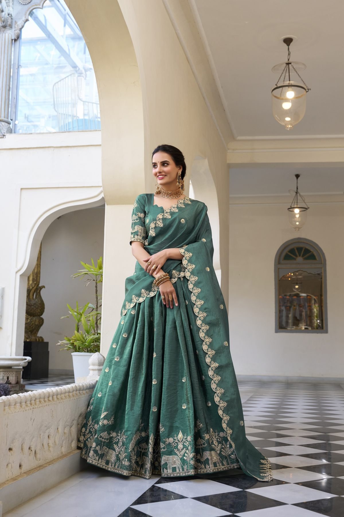 Surprising Teal Green Thread Embroidery Festival Wear Lehenga Choli