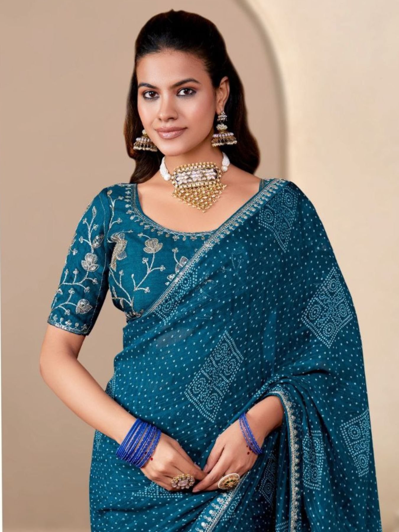 Teal Blue Printed Bandhani Saree in Georgette Exclusive Wholesale Party Wear
