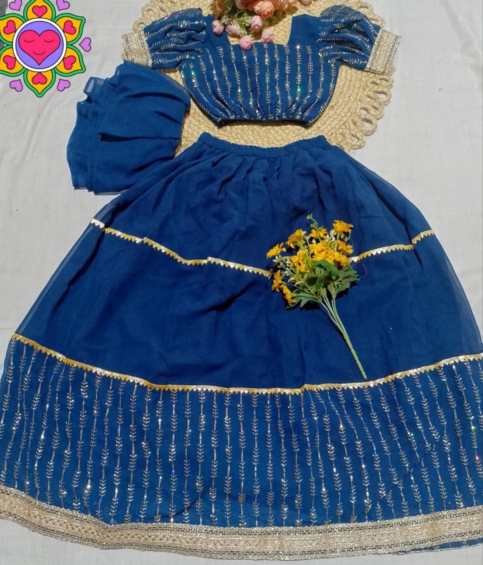 Elegant kids lehenga choli set in georgette fabric featuring sequins work with lace border dupatta. Perfect for festive and party occasions.