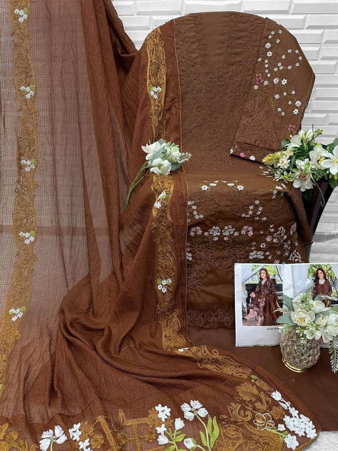 Timeless Brown Lightweight Cotton Suit Set with Heavy Embroidery Work