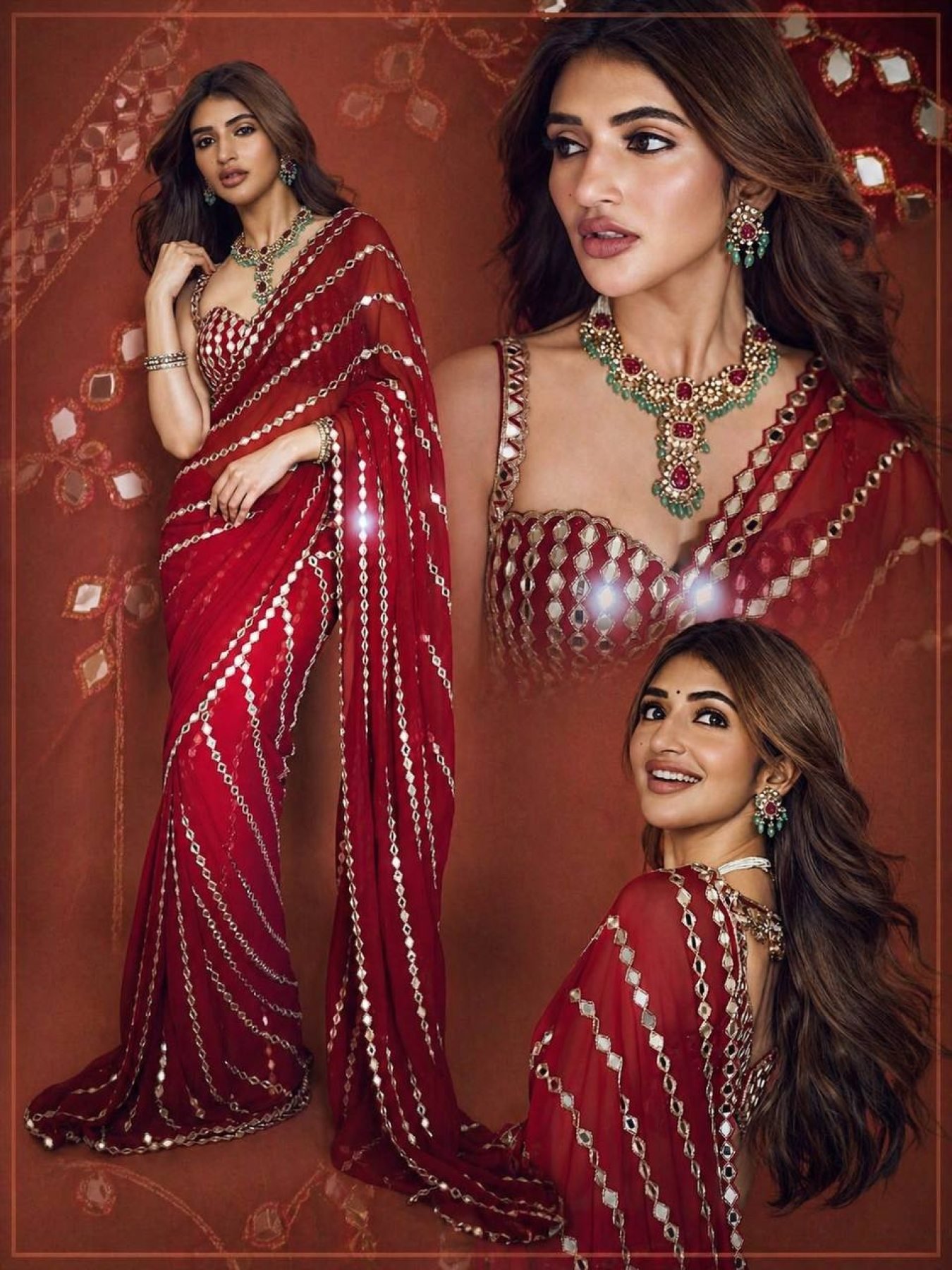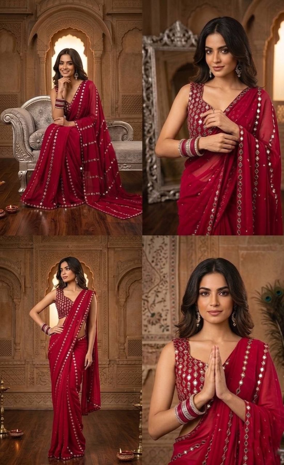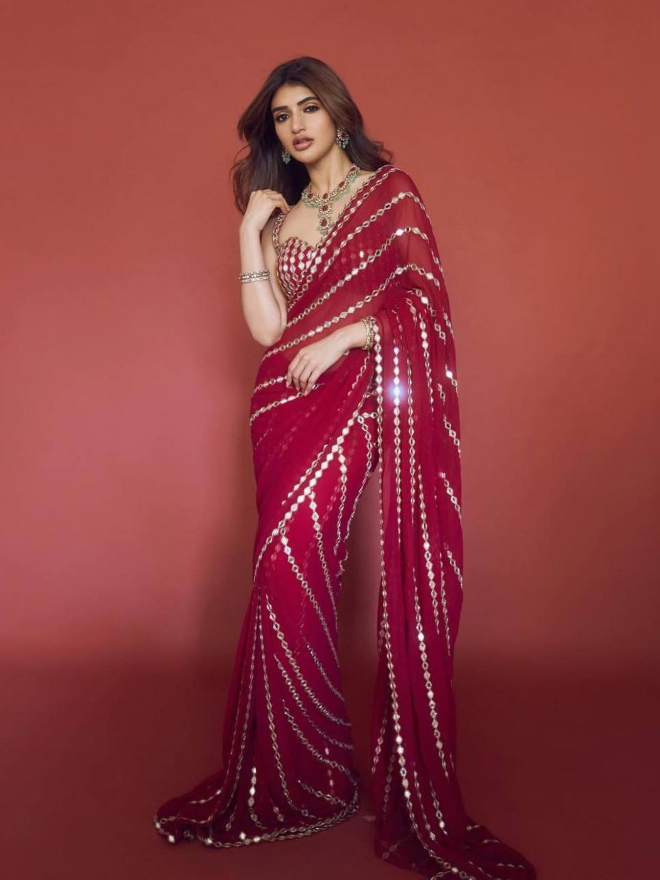 Timeless Red Faux Georgette Saree with Real Mirror Work for Party Wear