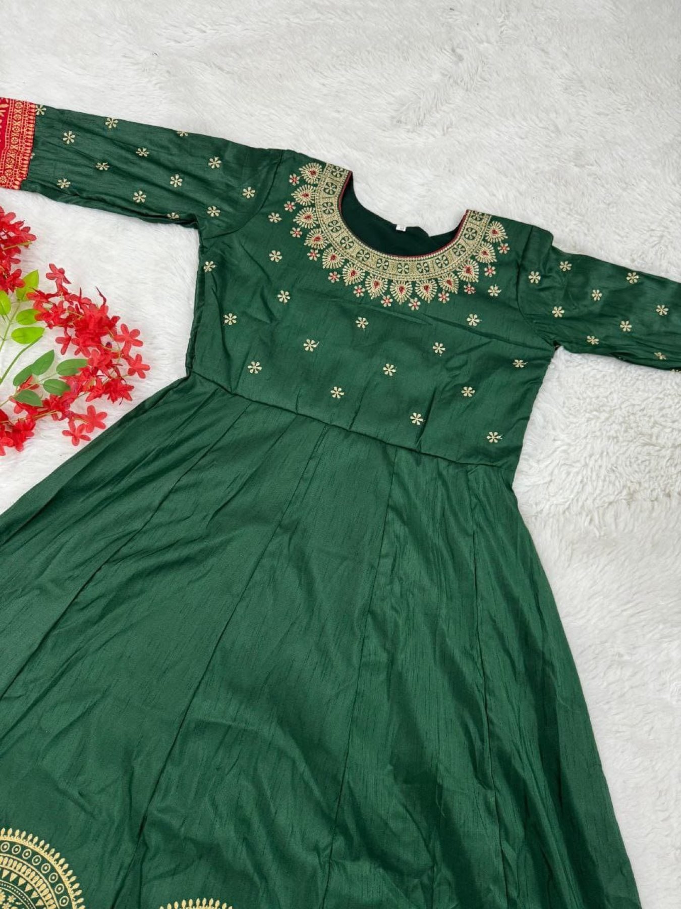 Traditional Joy Silk Embroidered Foil Print Gown Perfect for Garba Nights