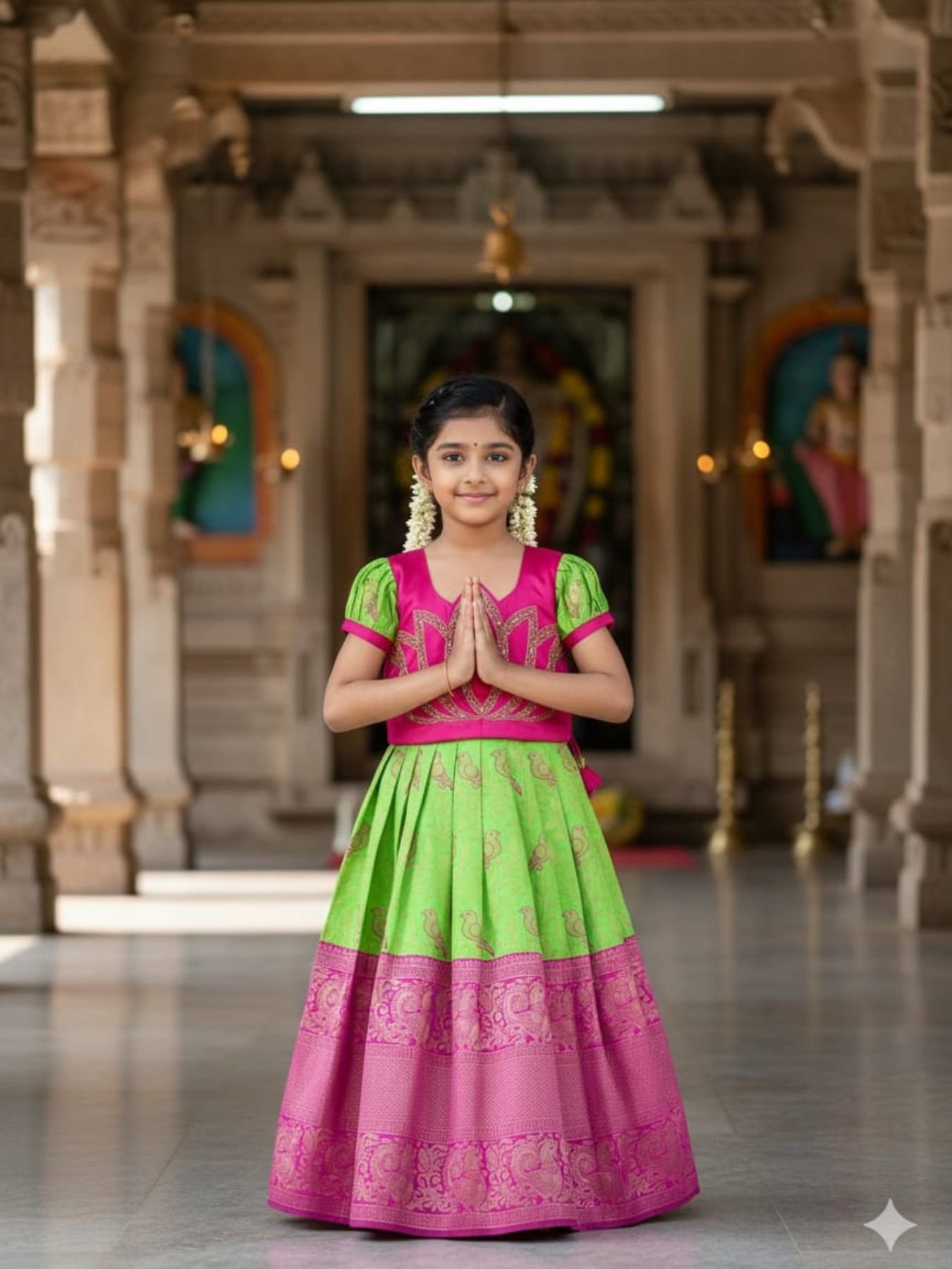 Elegant jacquard silk gown featuring traditional maggam work with full cotton lining for comfort. Perfect for festive occasions, weddings, and cultural events.