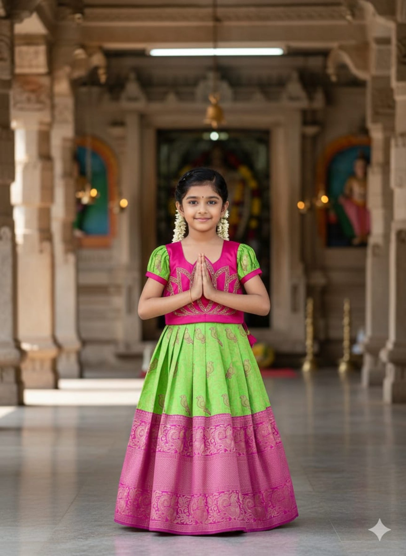Transformative Parrot Green Silk Frock Design for Wedding and Party Wear