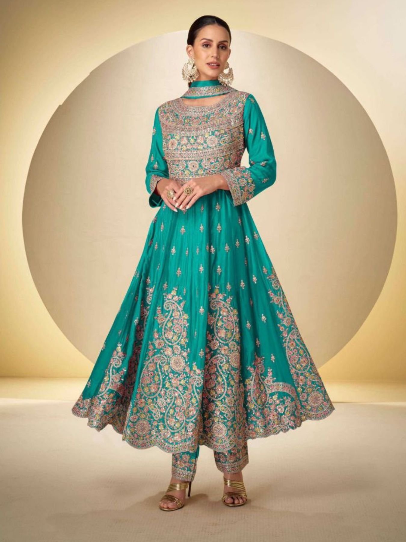 Trendsetting Sky Blue Fully Stitch Rasbari Catalog for Resellers and Exporters