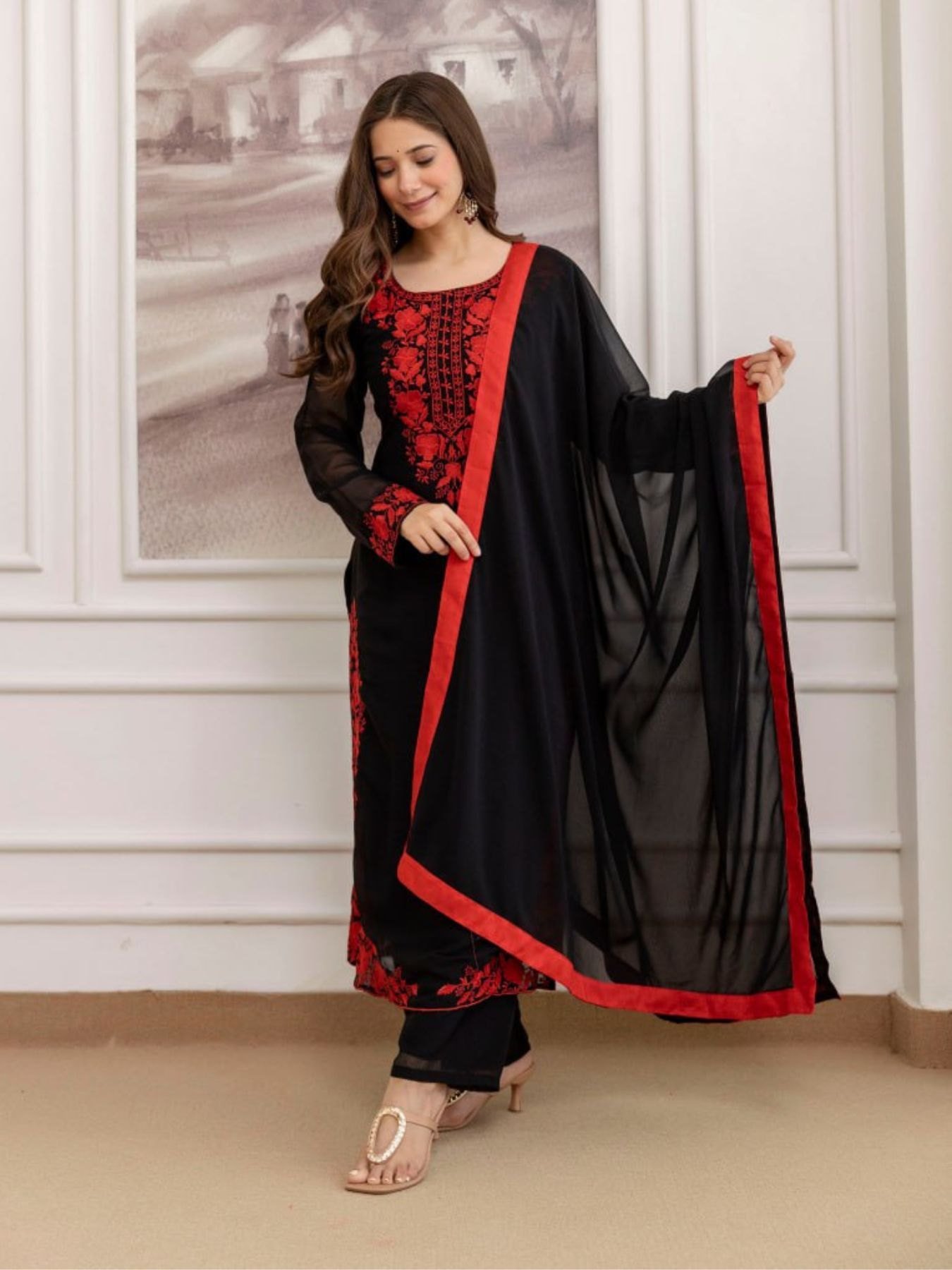 Classy fox georgette embroidered kurti set designed with premium finishing and soft drape.