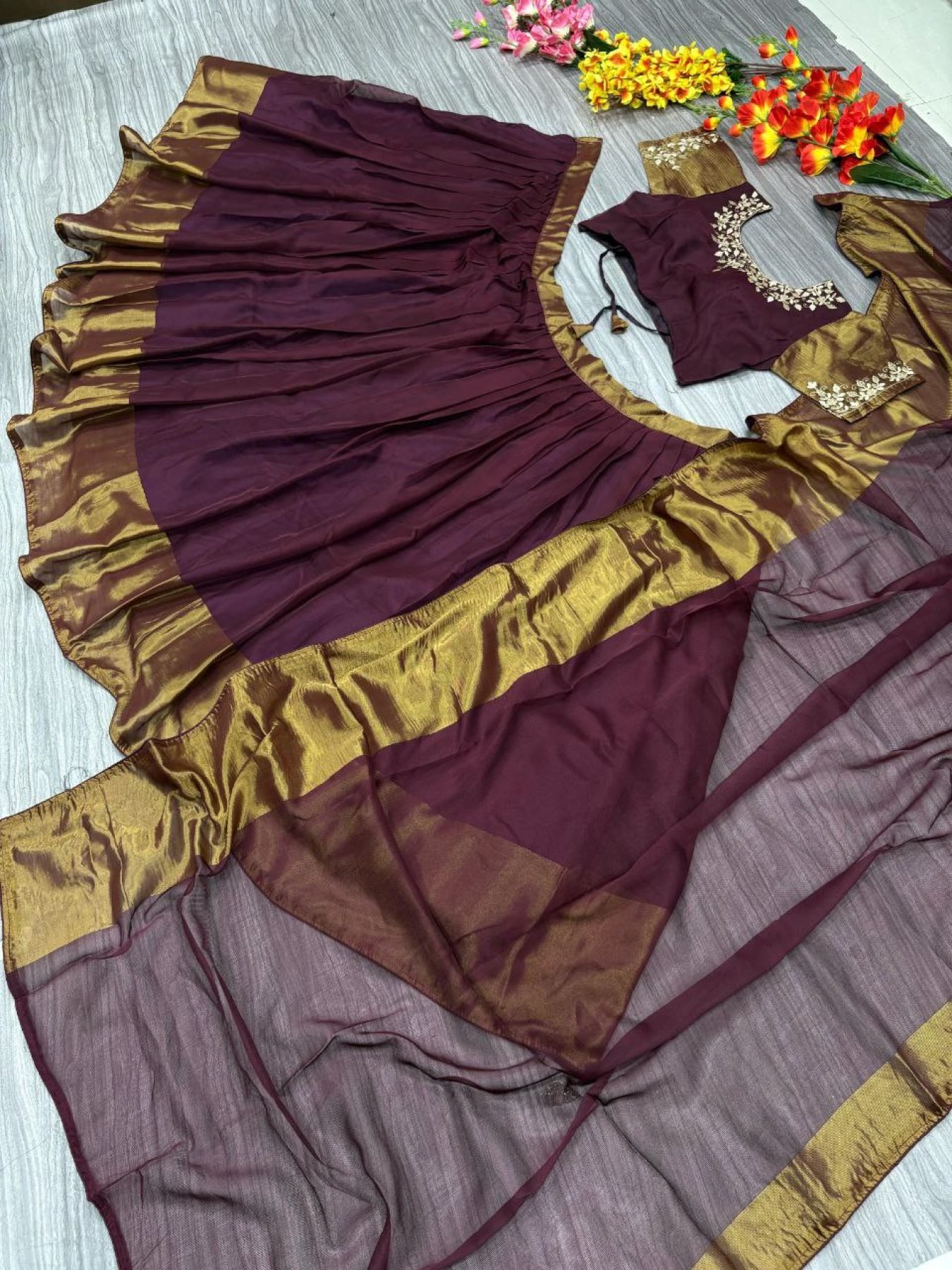 Fabric: Premium Chiffon Jari Patta