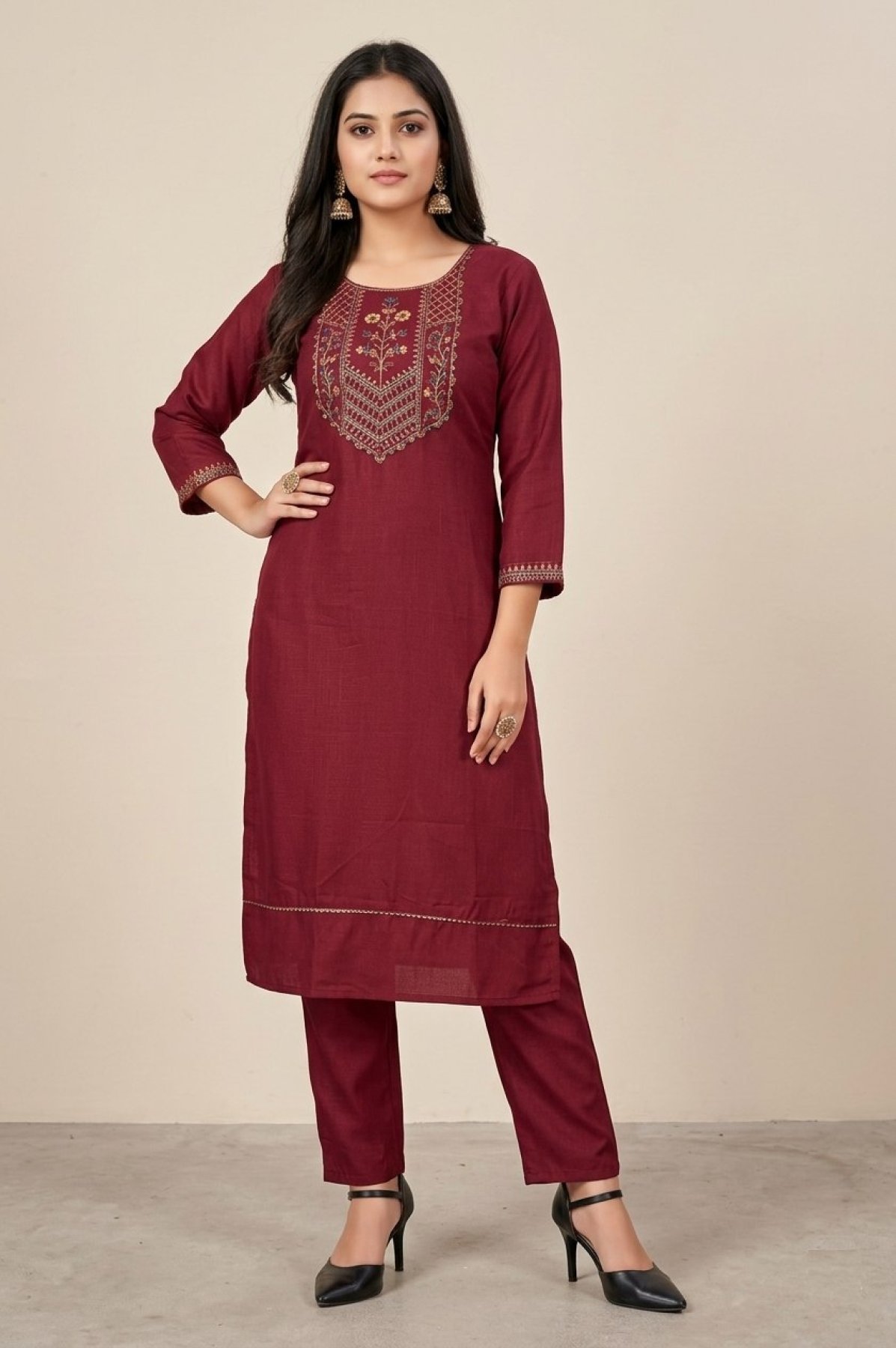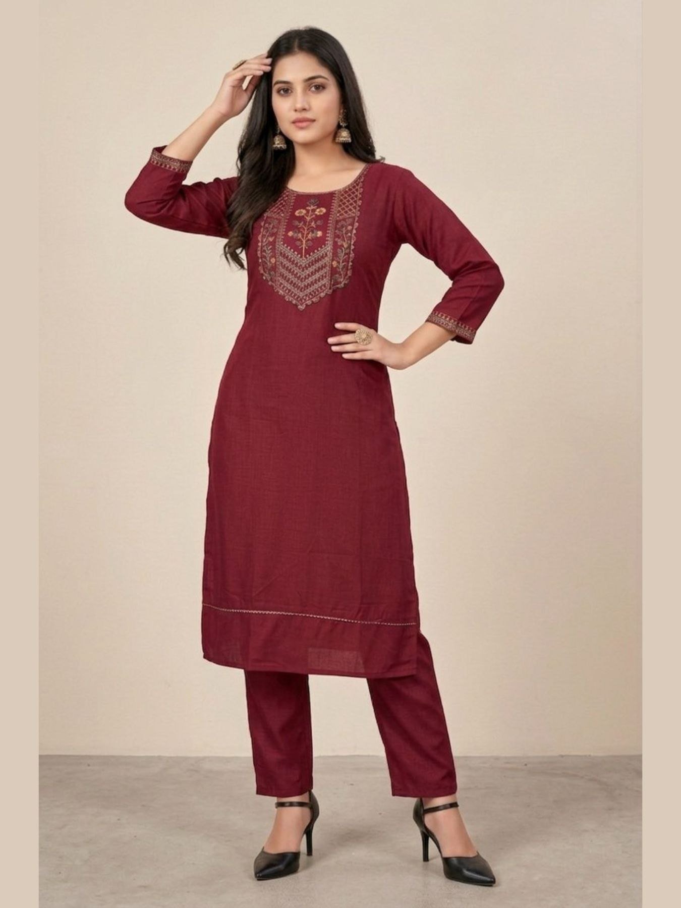Unique Maroon Cotton Kurti Pant Set for Women Daily Wear Collection