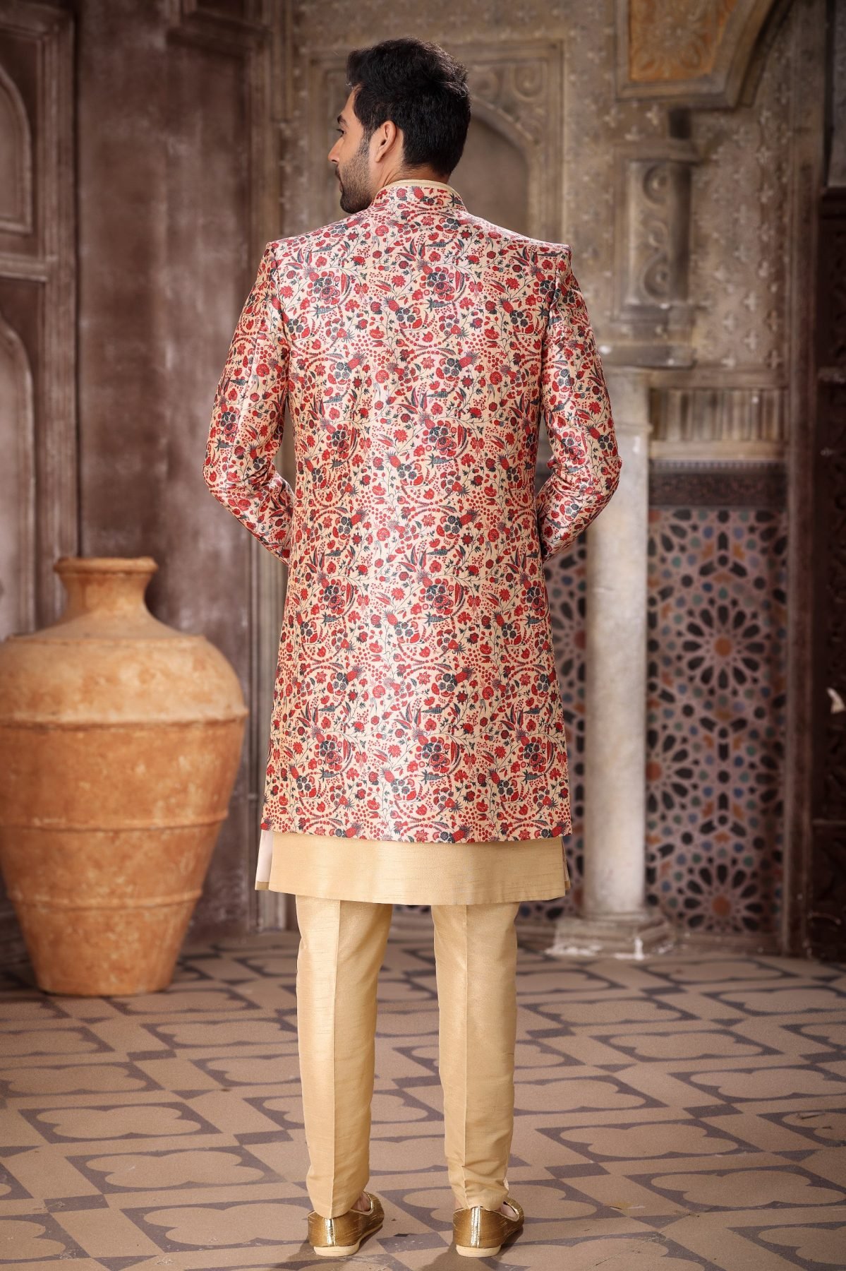 Premium 3 piece indo western jacket set crafted in art silk, velvet and banarasi jacquard fabrics with multiple designer variants. Comes with stylish jacket, kurta and aligarhi pant, perfect for wedding and festive wear.