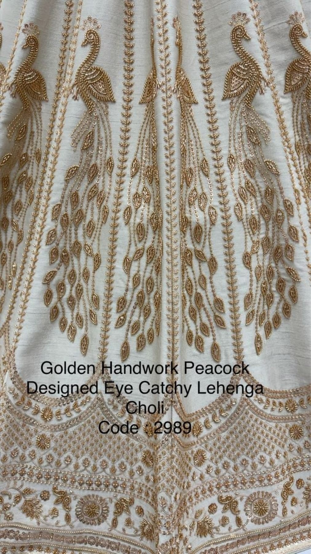 Luxury bridal lehenga crafted in premium silk featuring intricate handwork motifs, crystal detailing, zari, multi-thread embroidery, dori, and sequins work. Designed with a grand 4+ meter flair and heavy cancan, this outfit offers a rich royal look, perfect for weddings, bridal wear, and grand occasions.