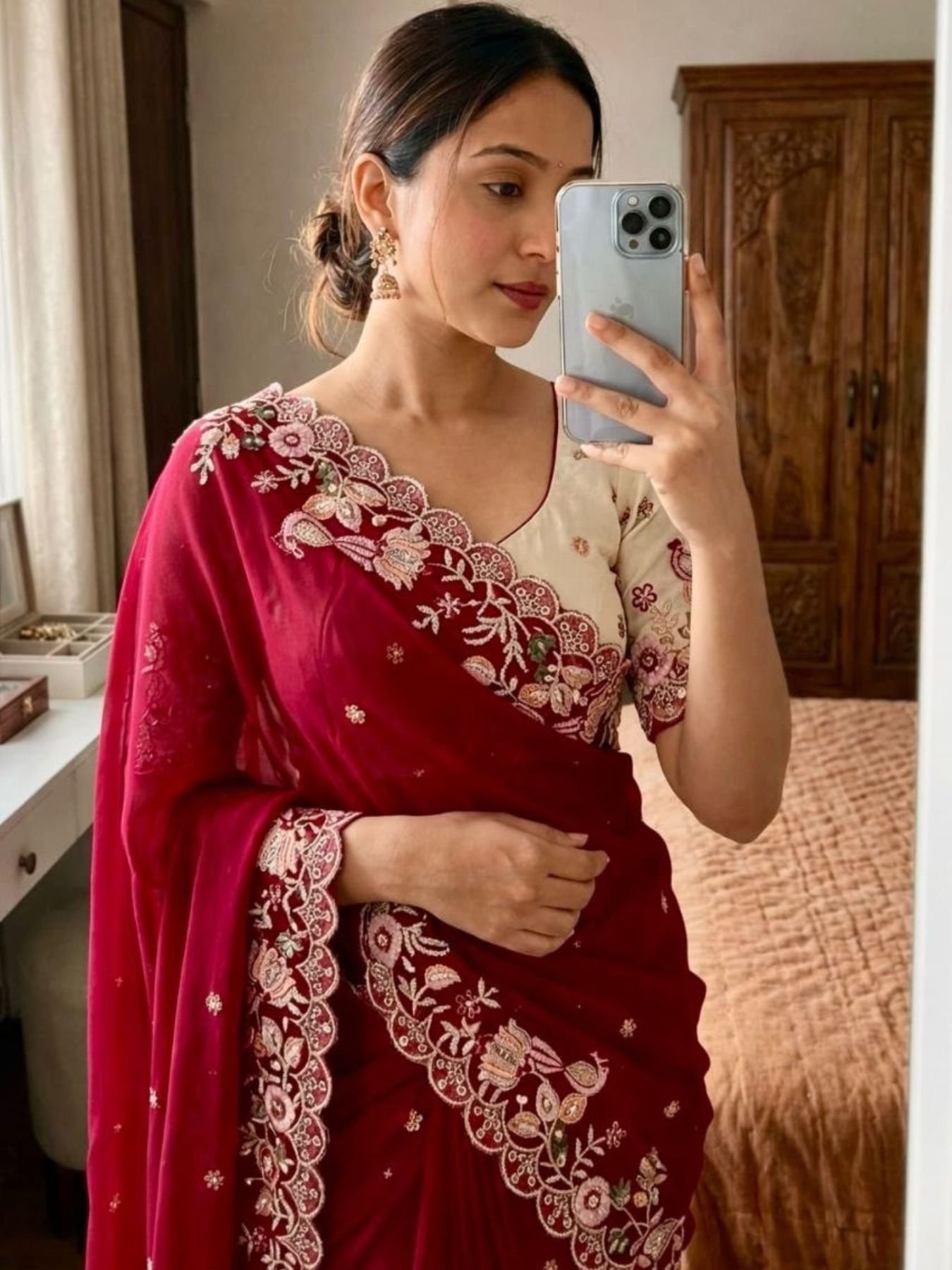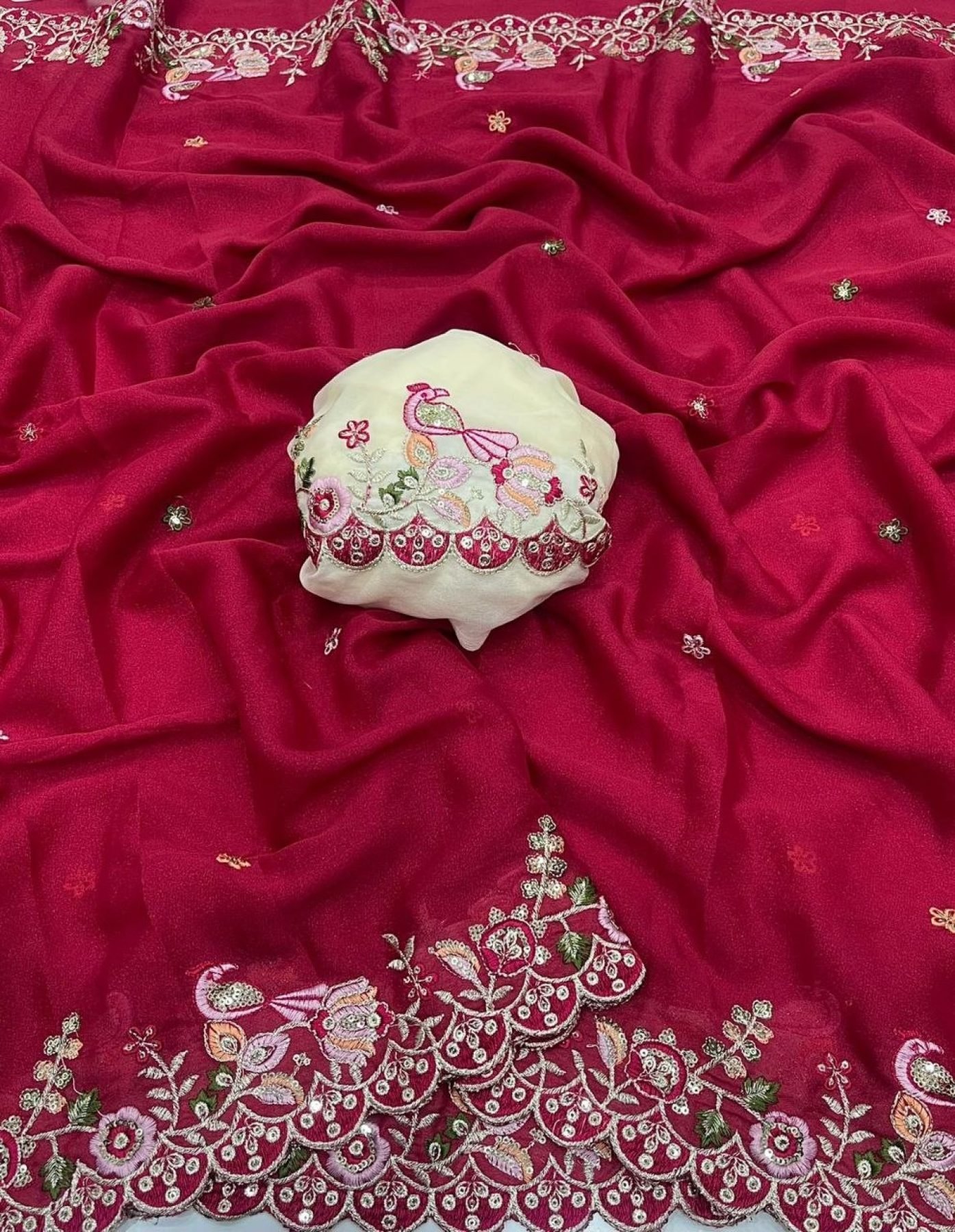 Vibrant Maroon Georgette Sequins Embroidery Saree for Party Wear