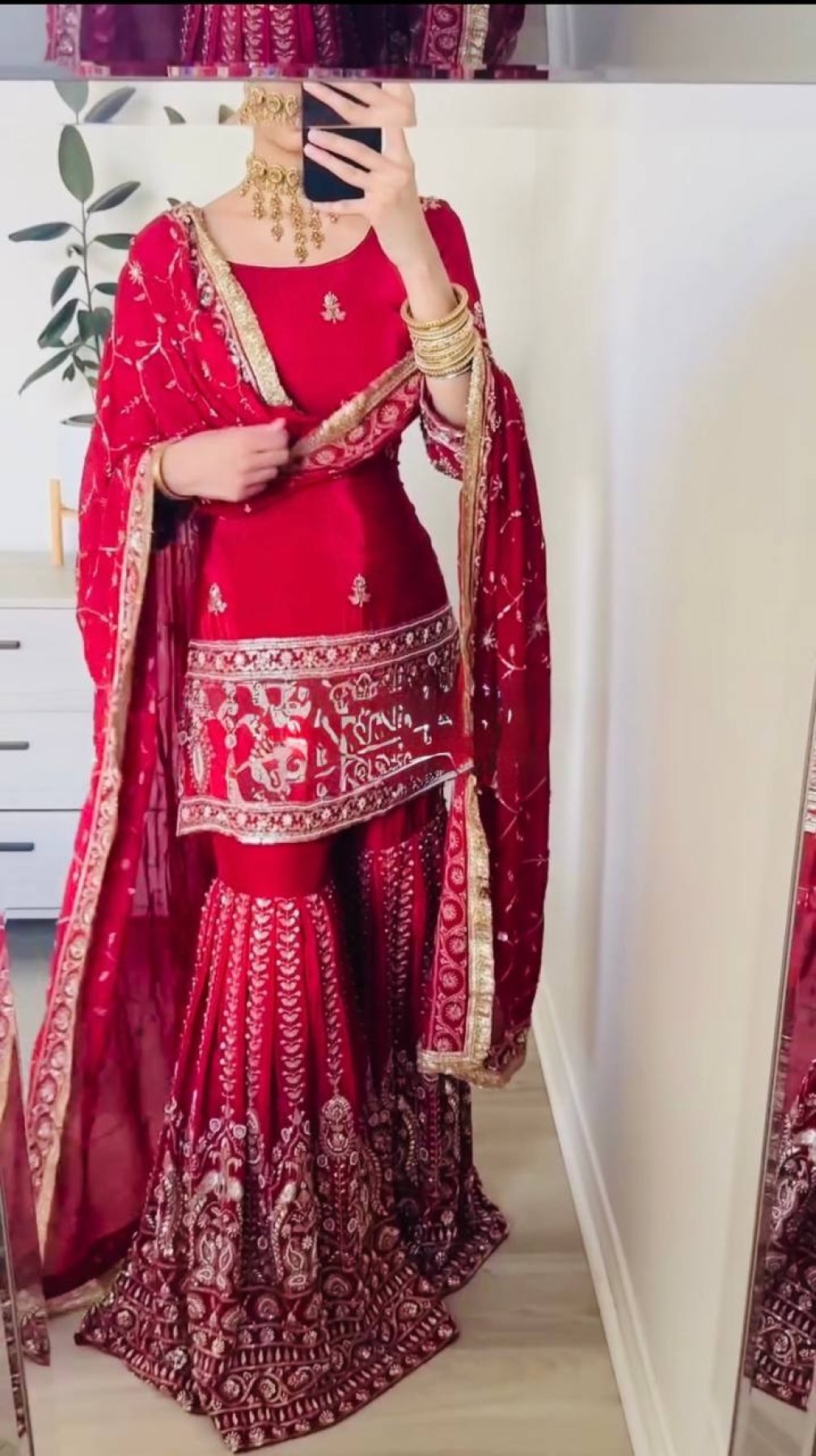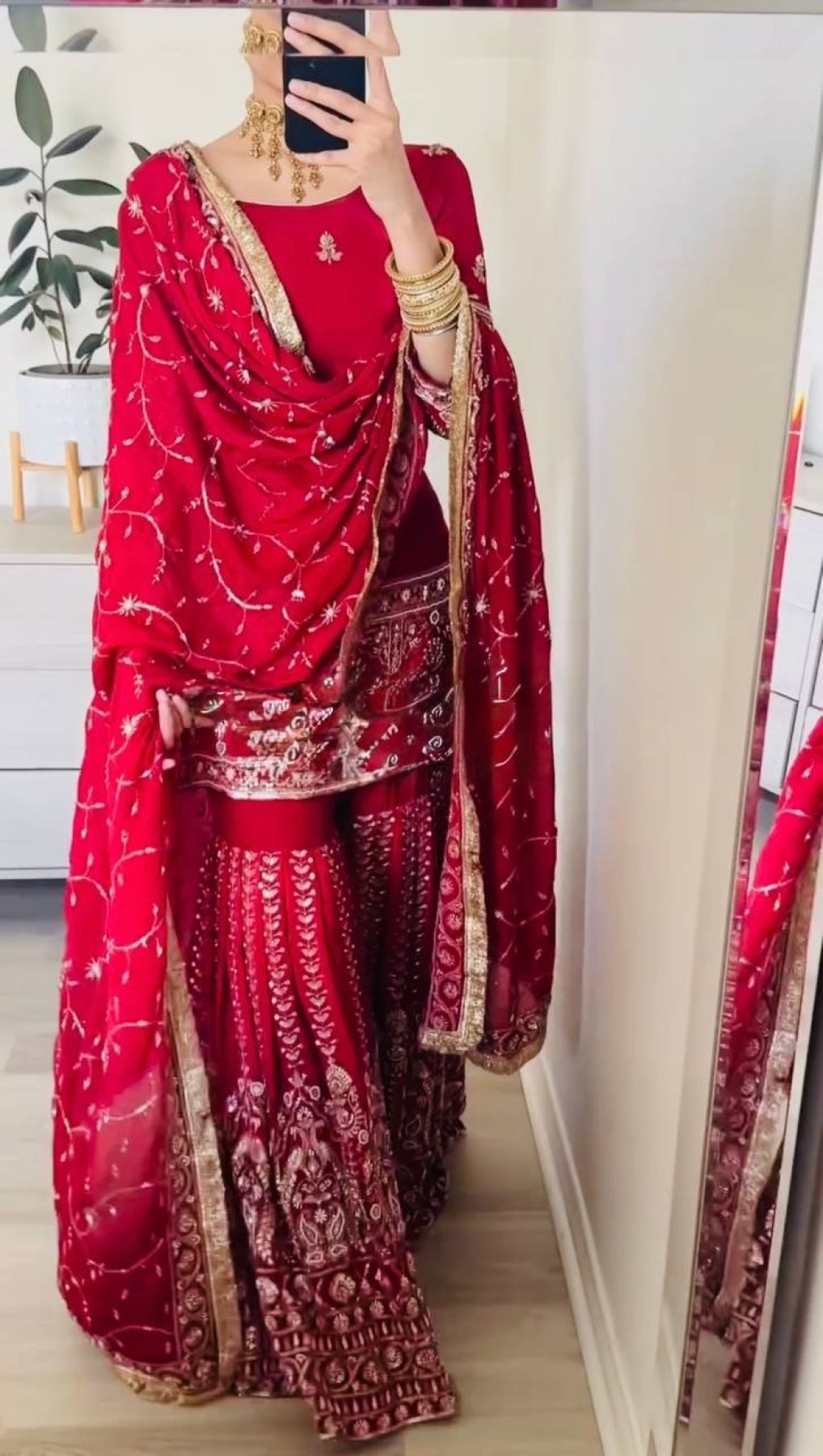 Wedding Designer Red Top Sharara with Dupatta for Women