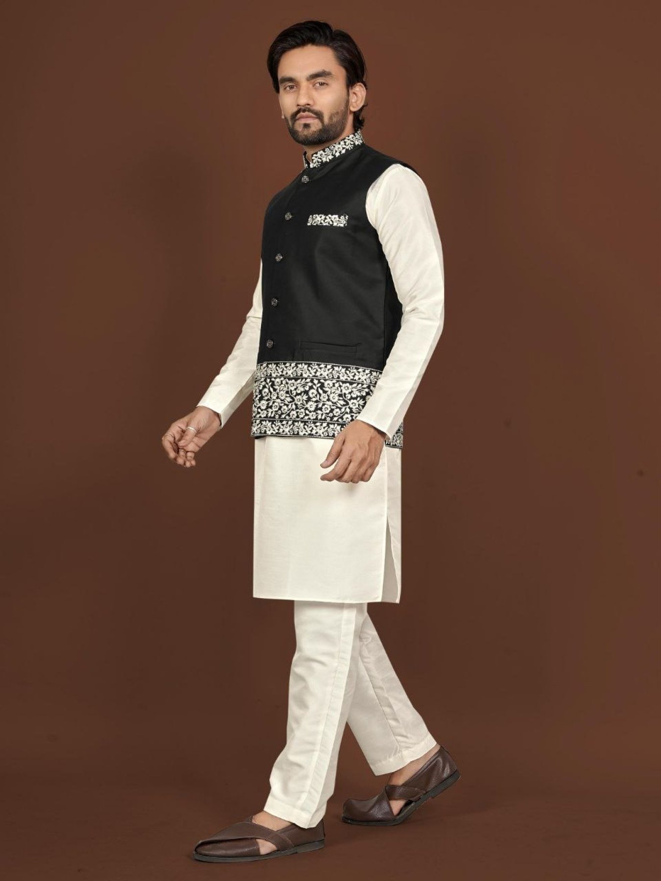 Wedding Wear Black Koti Kurta Set for Men Traditional Look