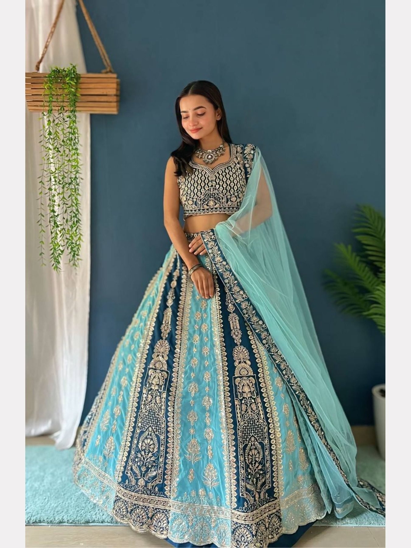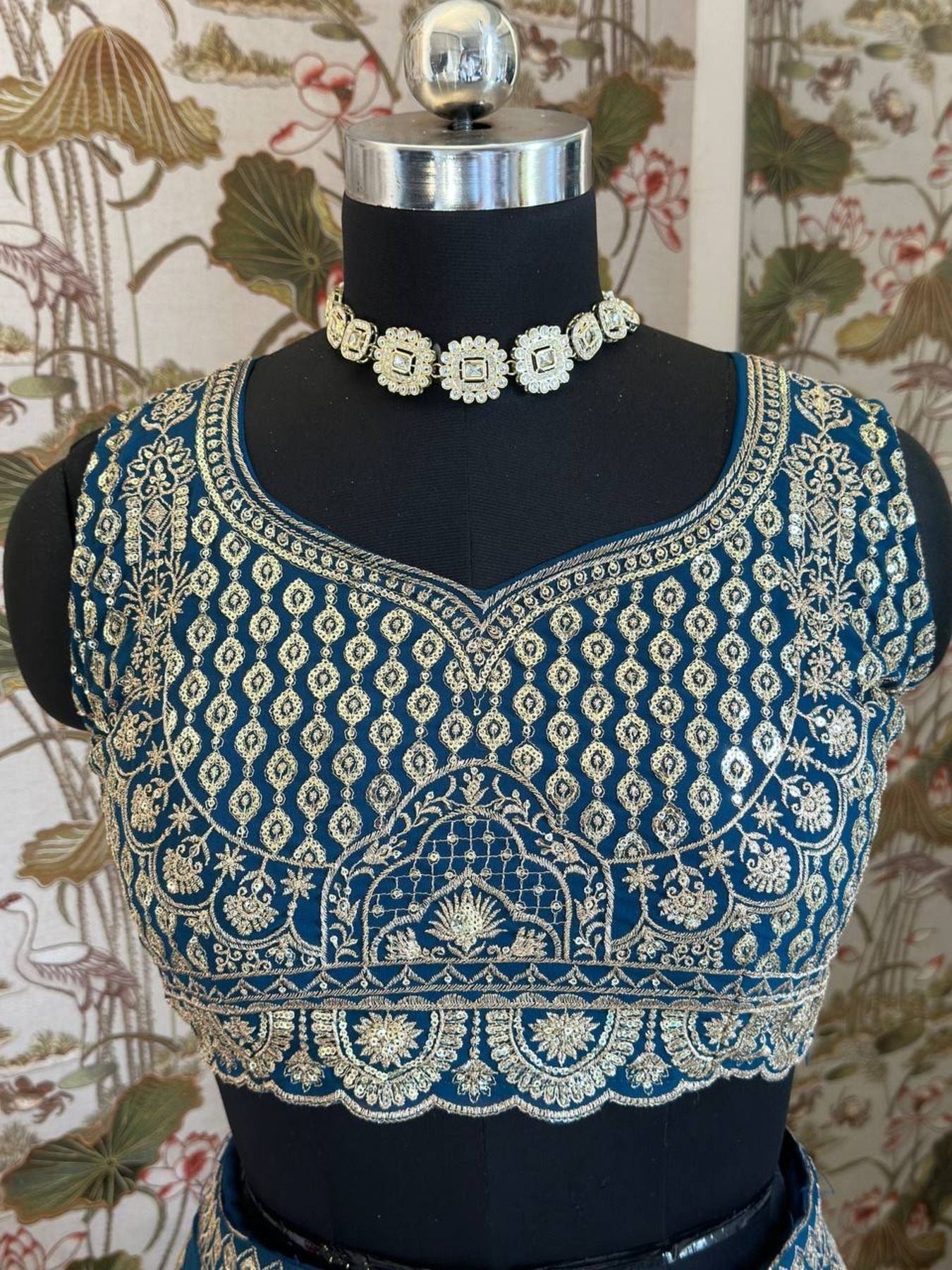 LEHNGA DETAILS: FAUX GEORGEET WITH EMBROIDERY SEQUENCE ZARI DESIGN WORK