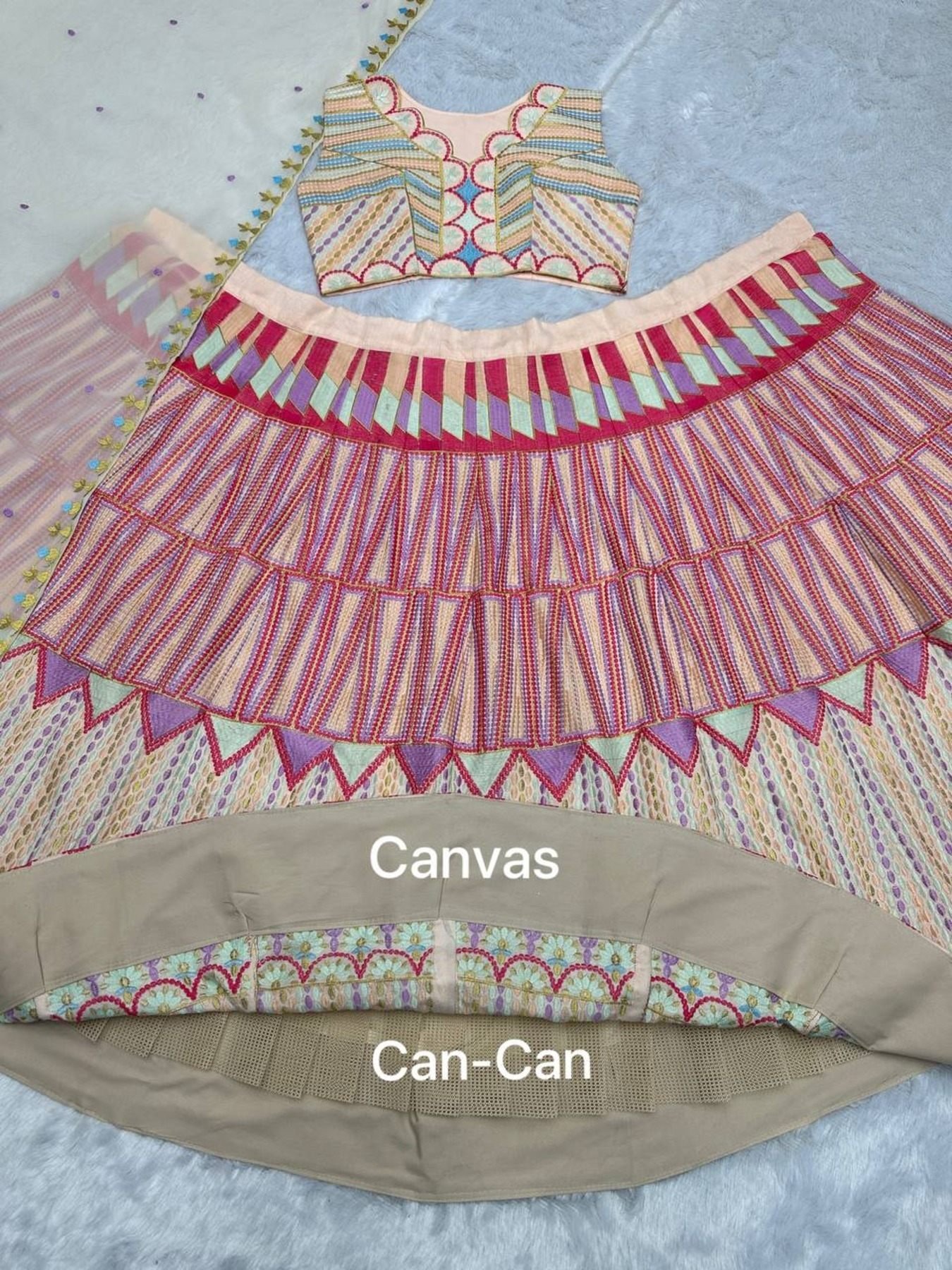 Lahengha Work : Heavy Embroidery Thread And Jari Work With Can-Can And Canvas Patta