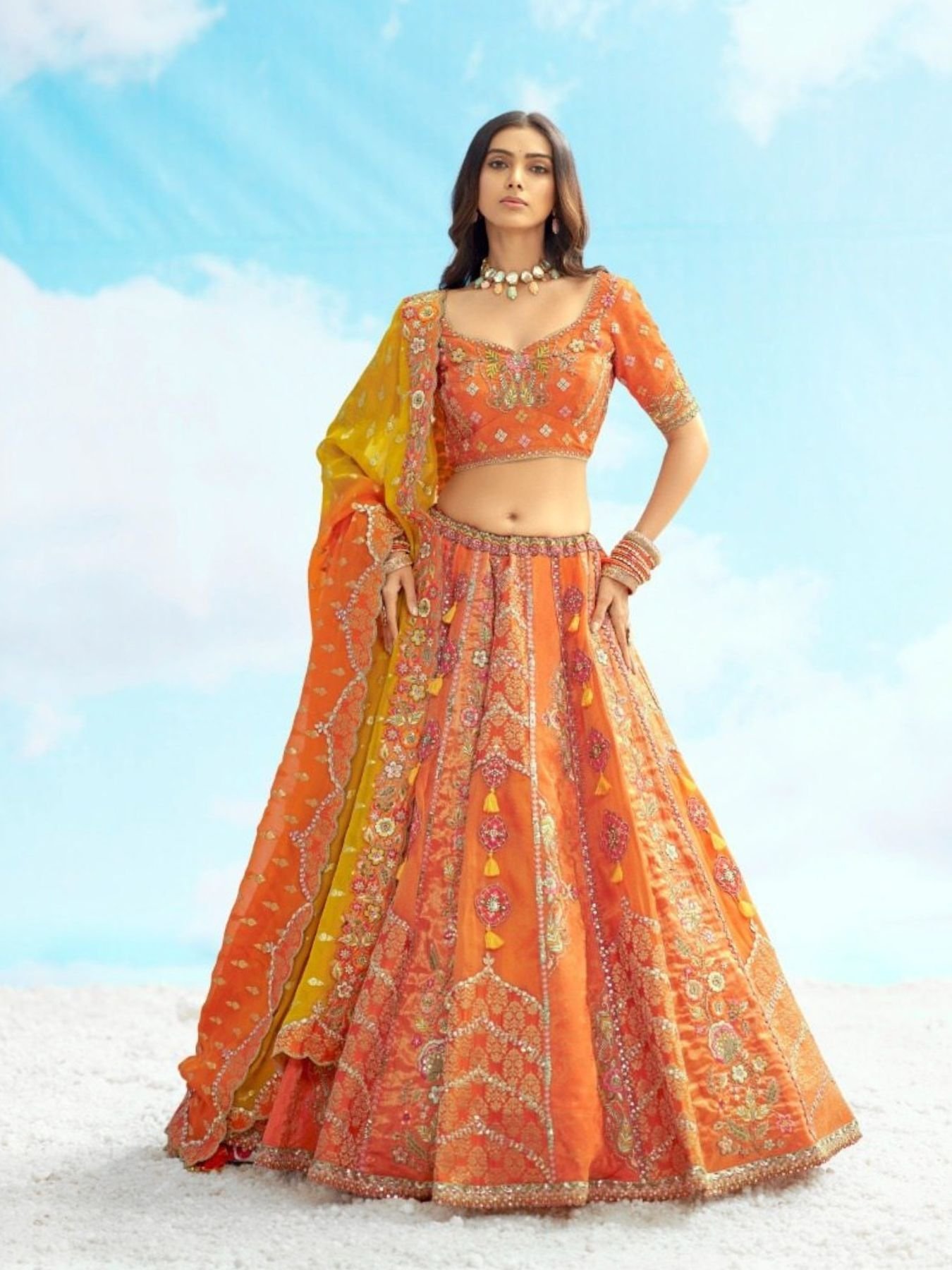 Work: Beautifully embroidered to match the lehenga's charm
