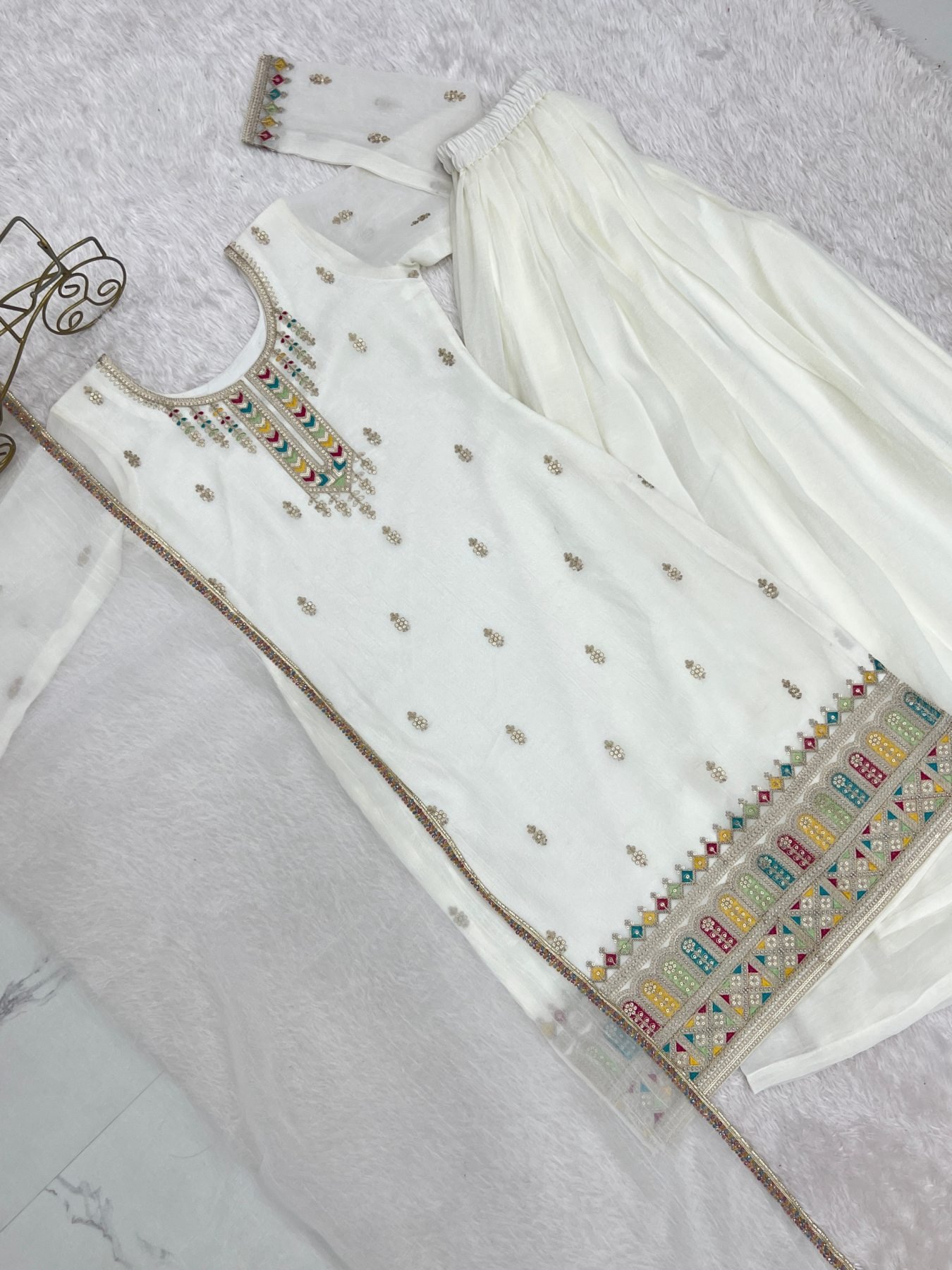White Color Festive Eid Special Crunchy Silk Suit Dress Palazzo Style Wholesale Ethnic Wear