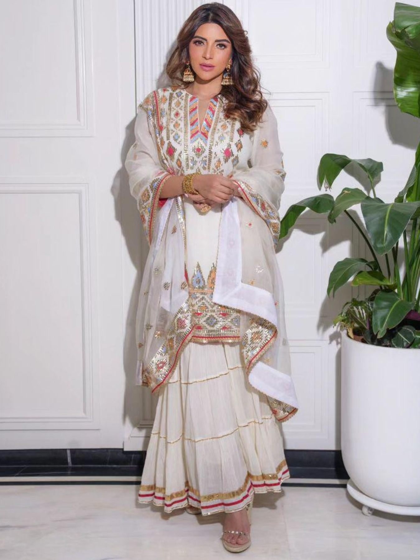 SHARARA : HEAVY GEORGETTE WITH LACE WORK (FULLY STITCHED)