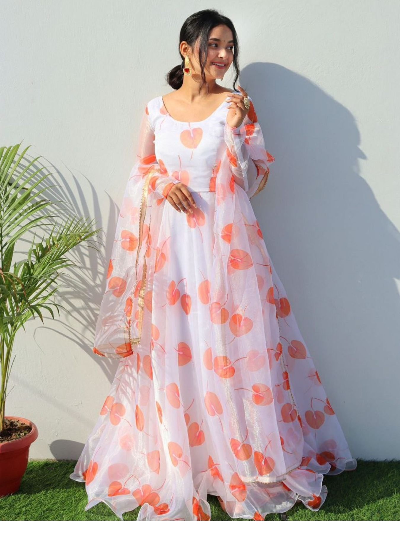 White leaf Print Georgette Anarkali With Duppta Collection