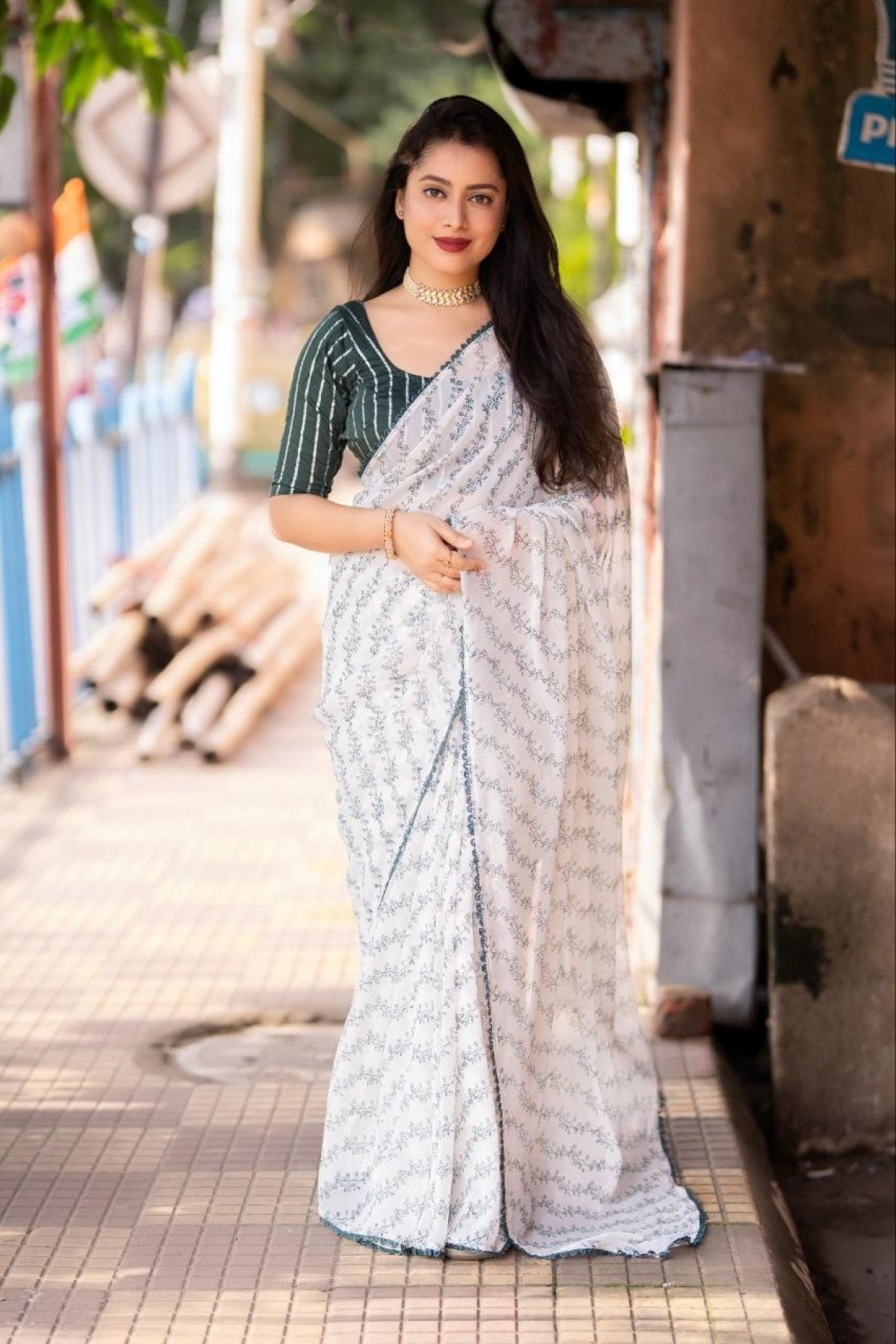 White Leheriya Printed Georgette Saree