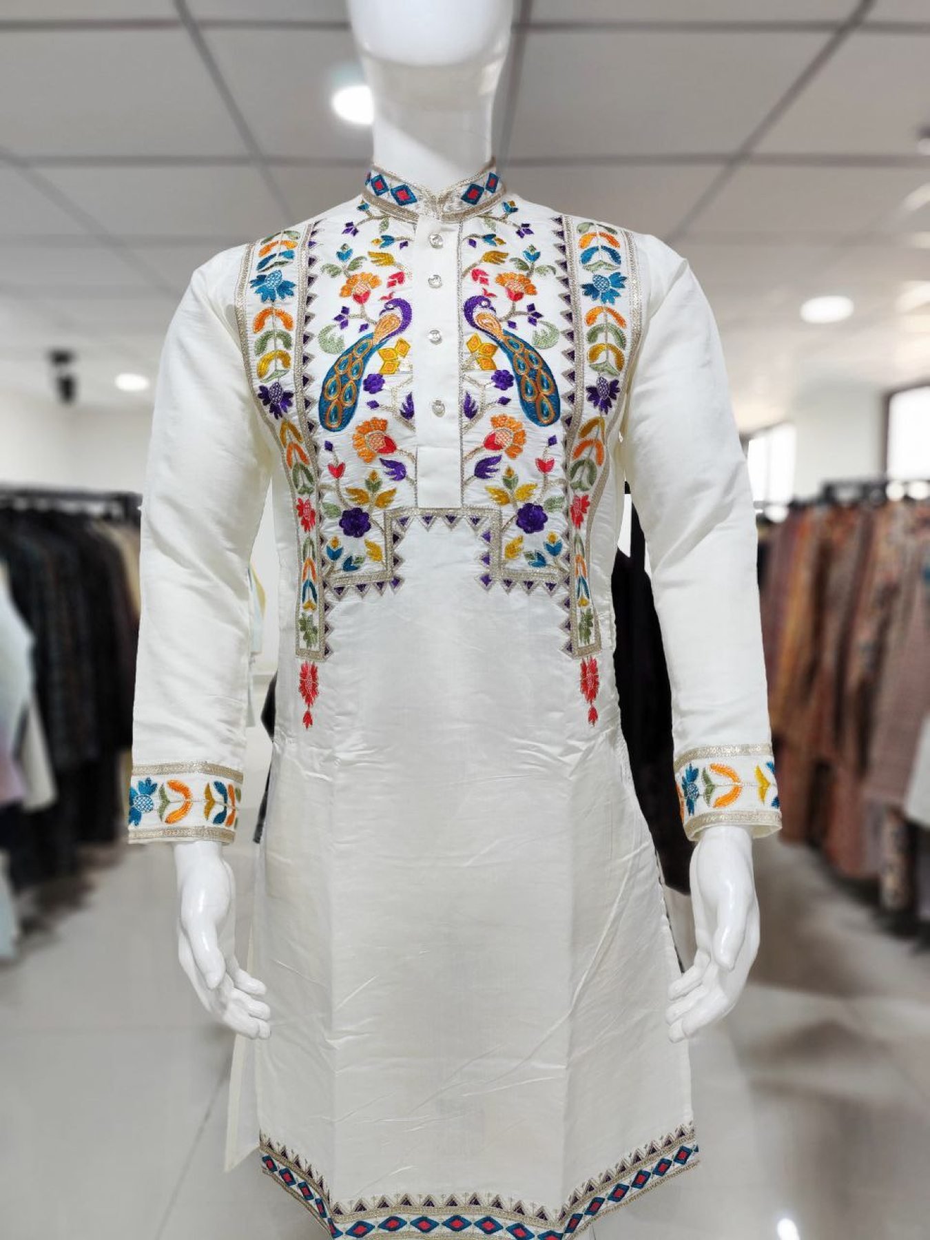 White Silk Embroidery Kurta Pajama for Men for Festive Events