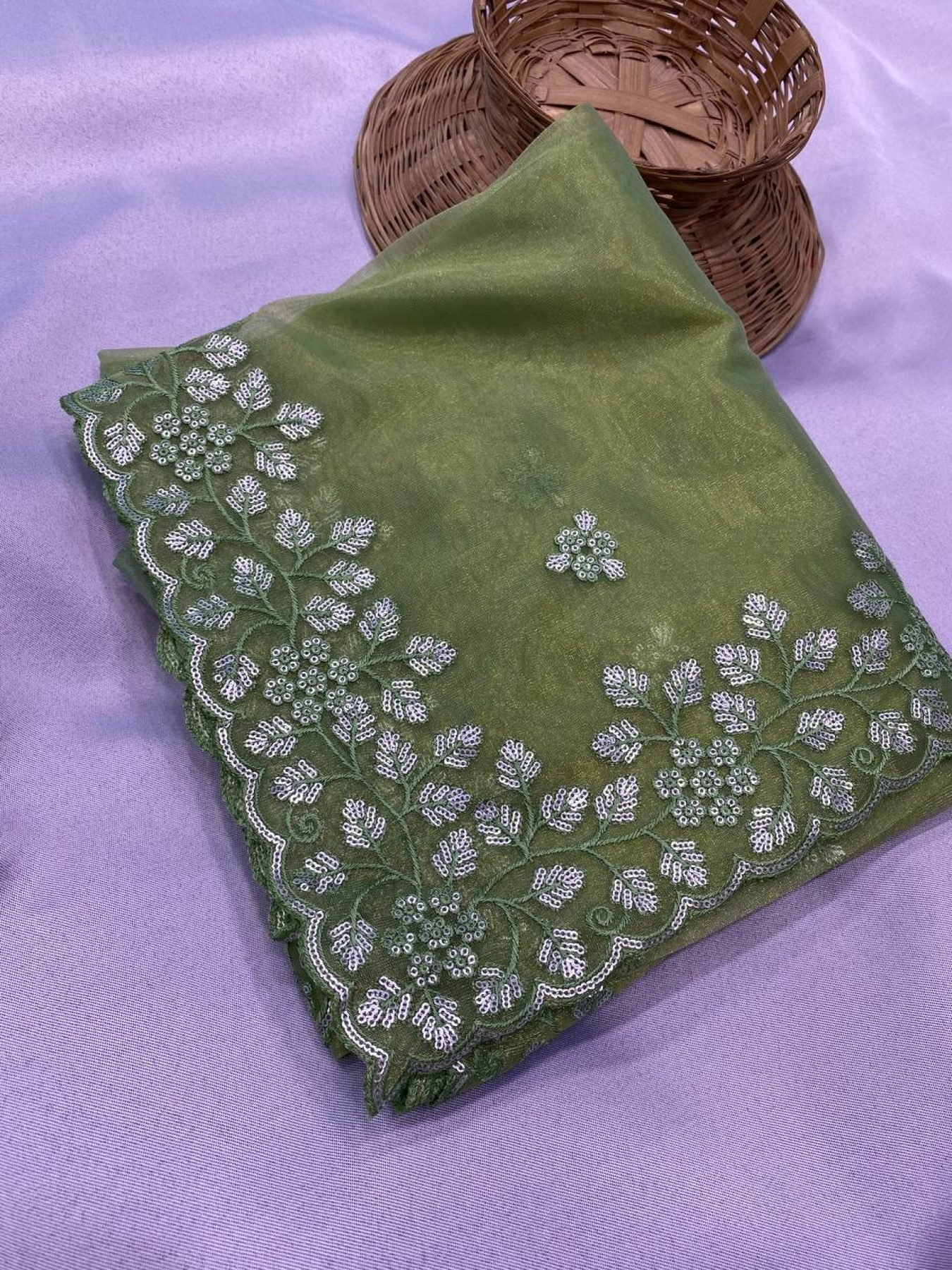 Wholesale Collection Women Beautiful Designer Embroidery Green Saree