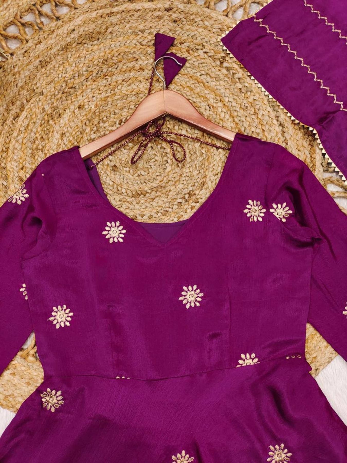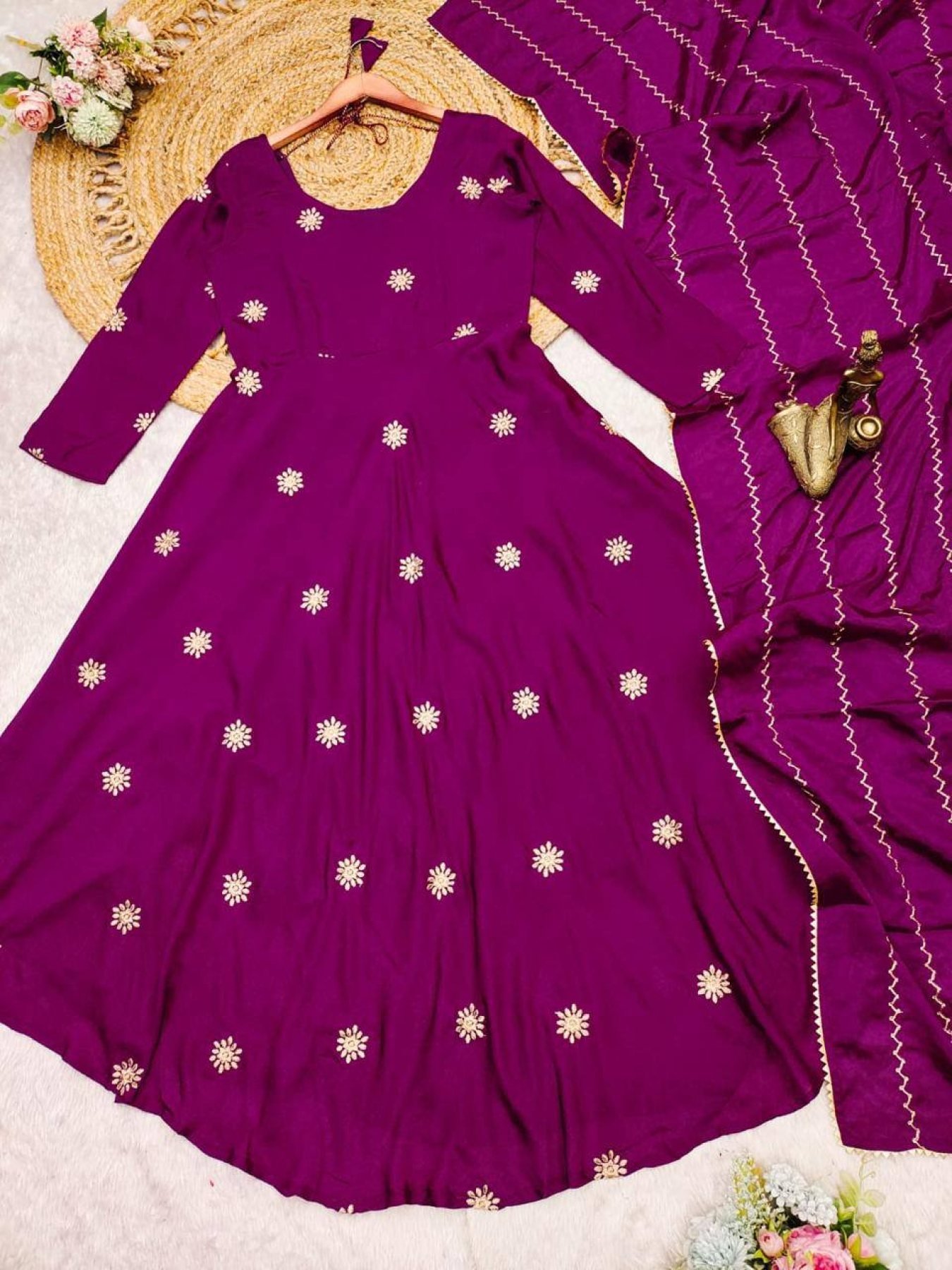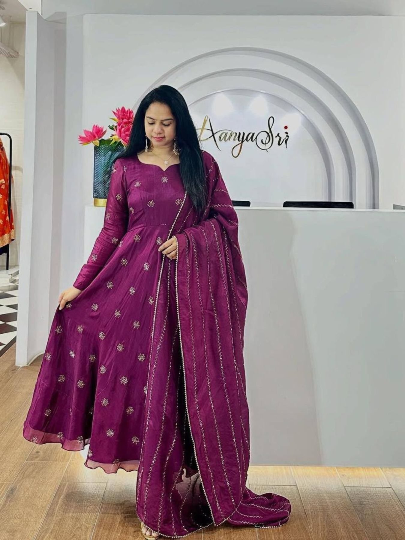 Wine anarkali with Embroidered Matching dupatta available only at Royal Export