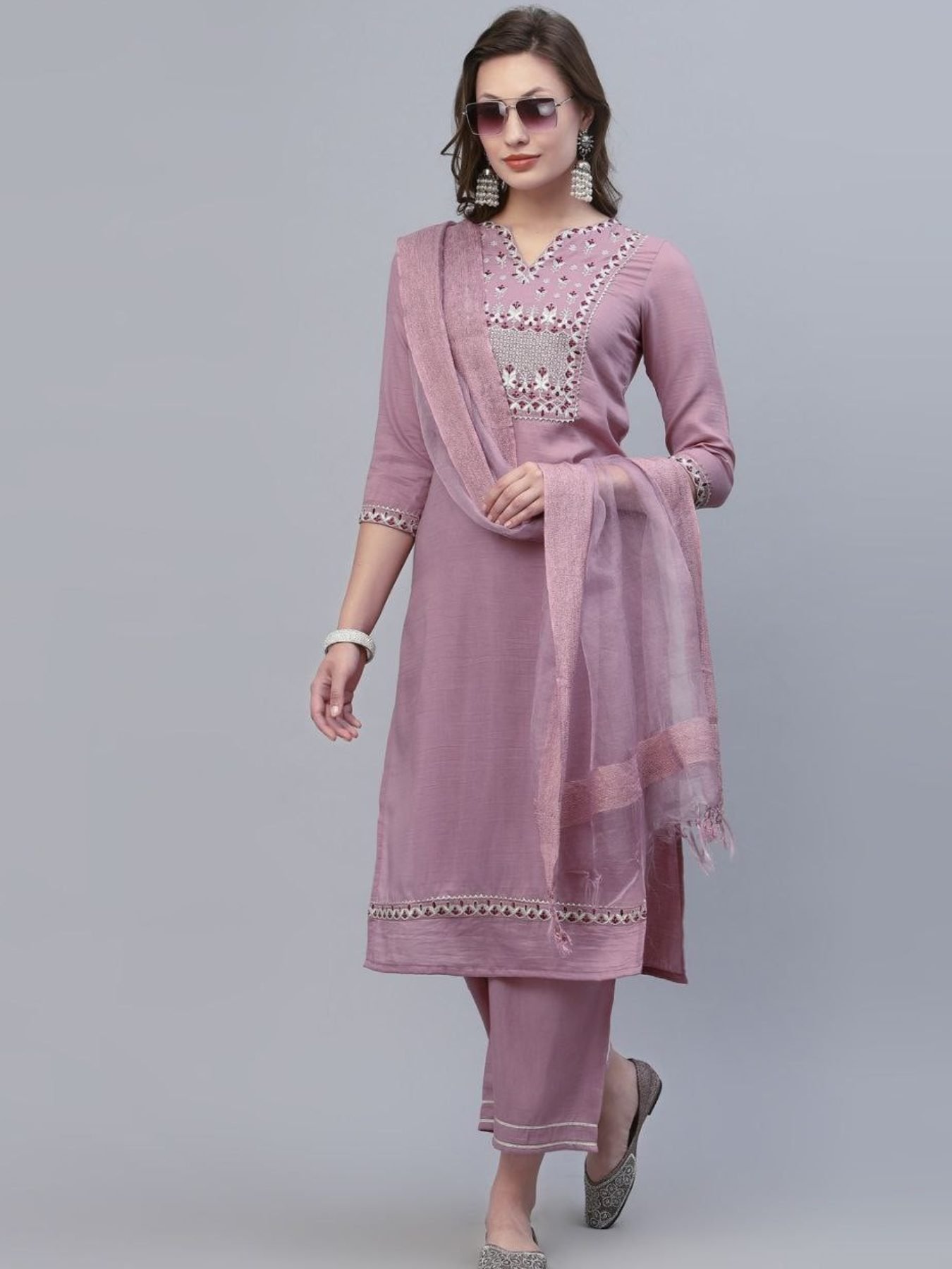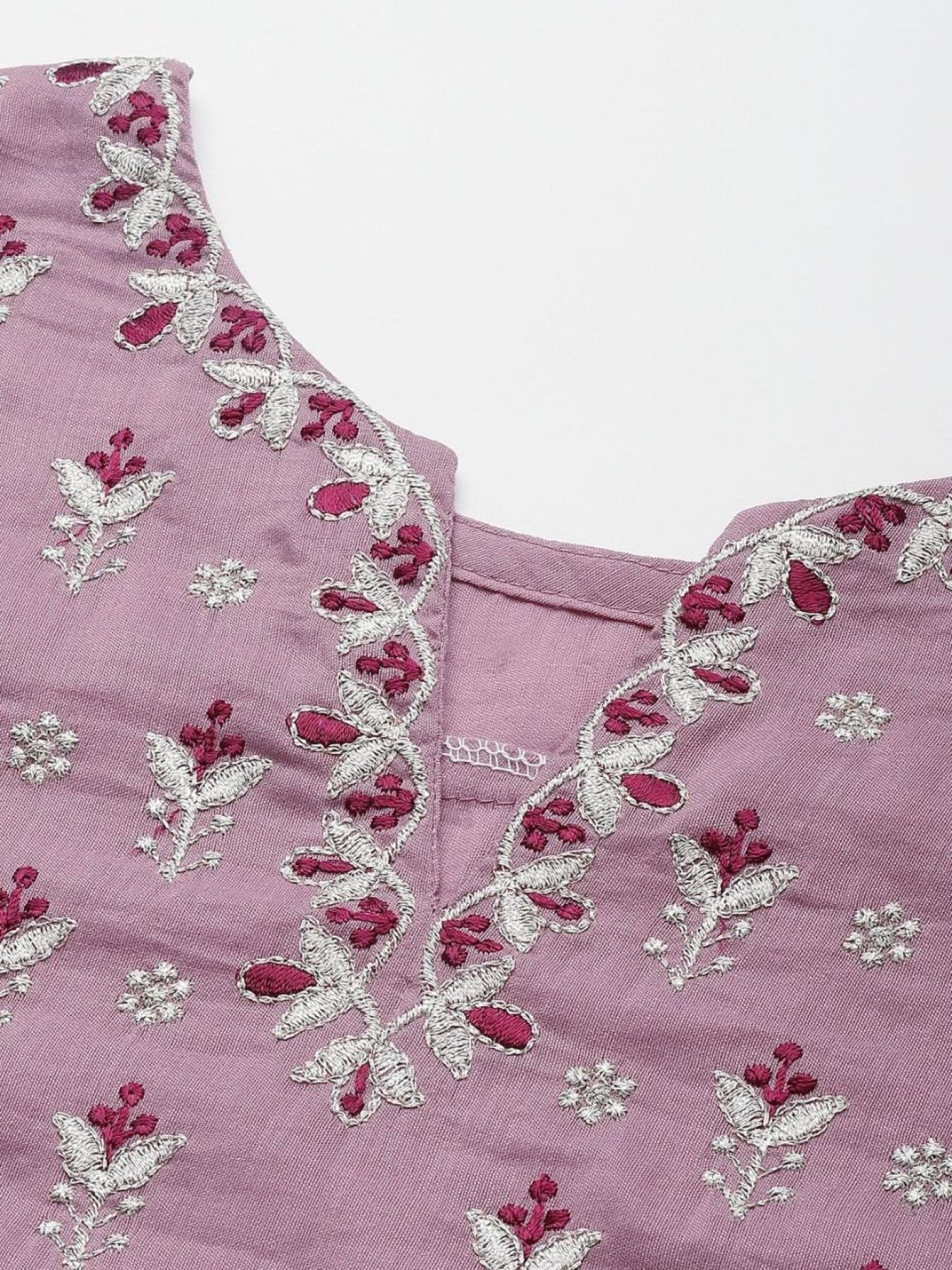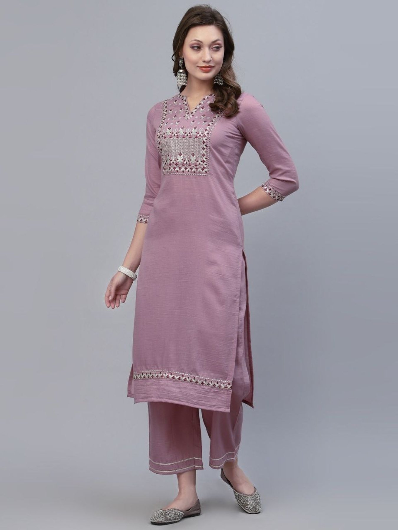 Women Viscose Rayon Embroidered Pattern Kurti Pant Set