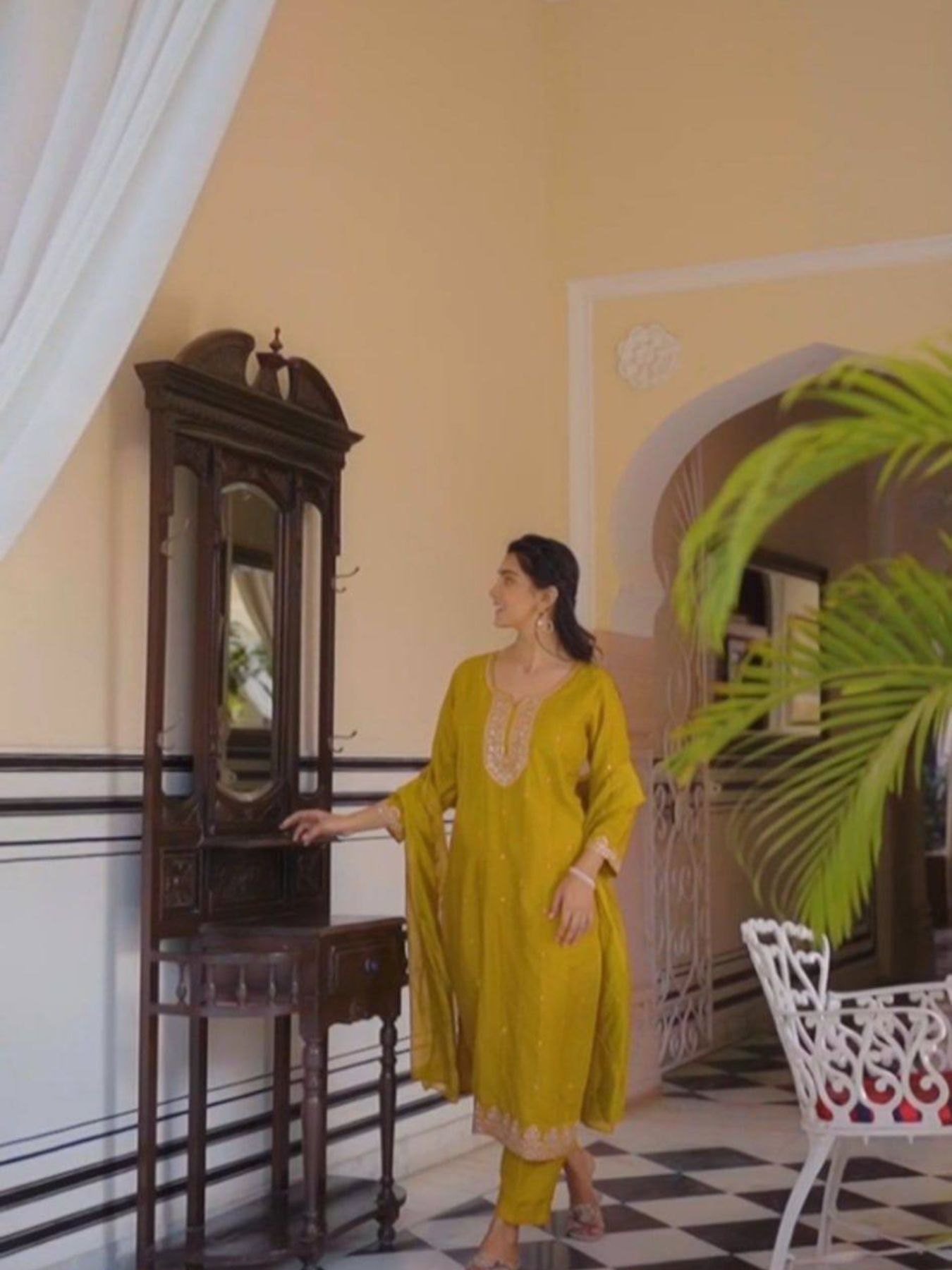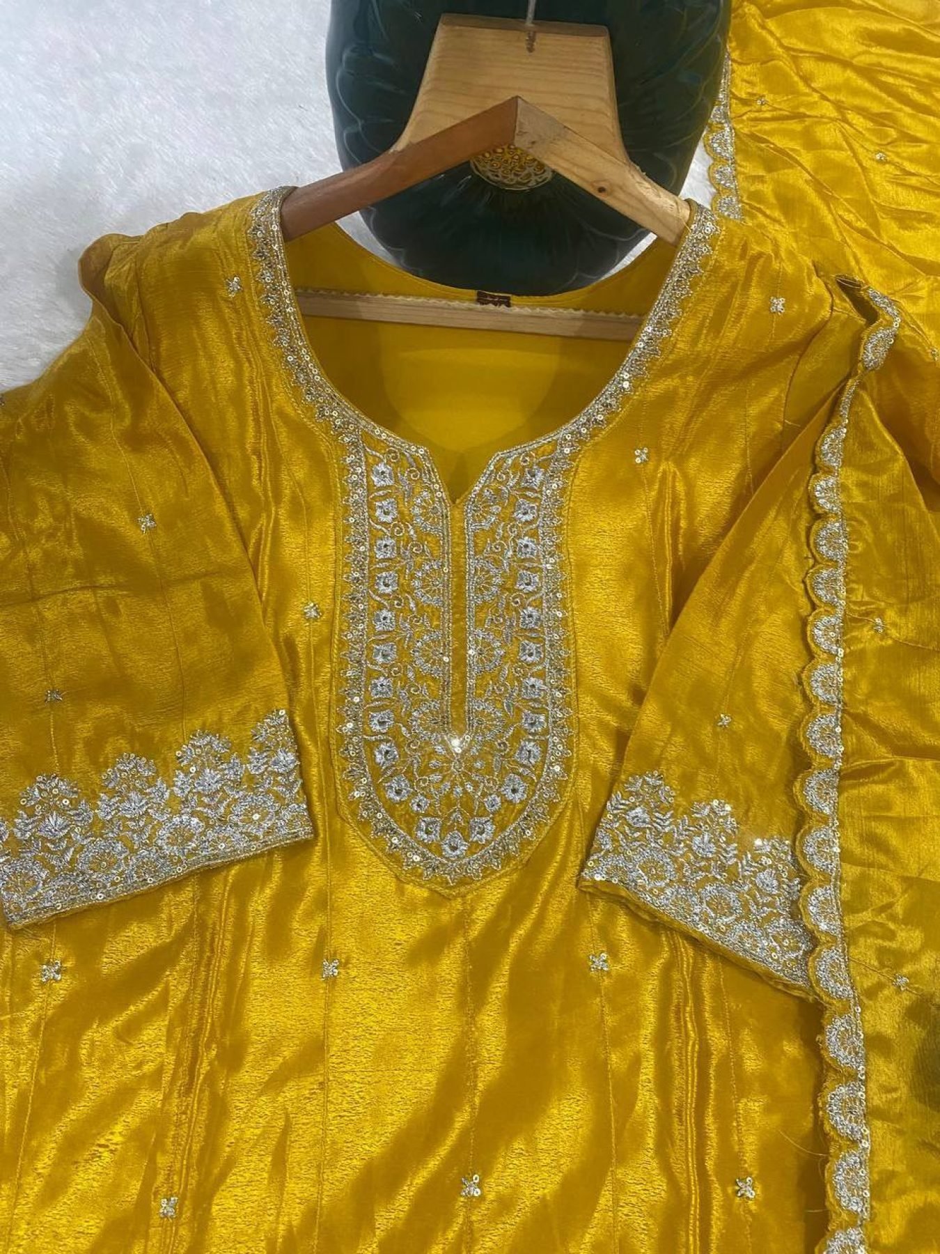 Yellow Chinon Suit Set with Heavy Embroidery and Dupatta for Festive Wear