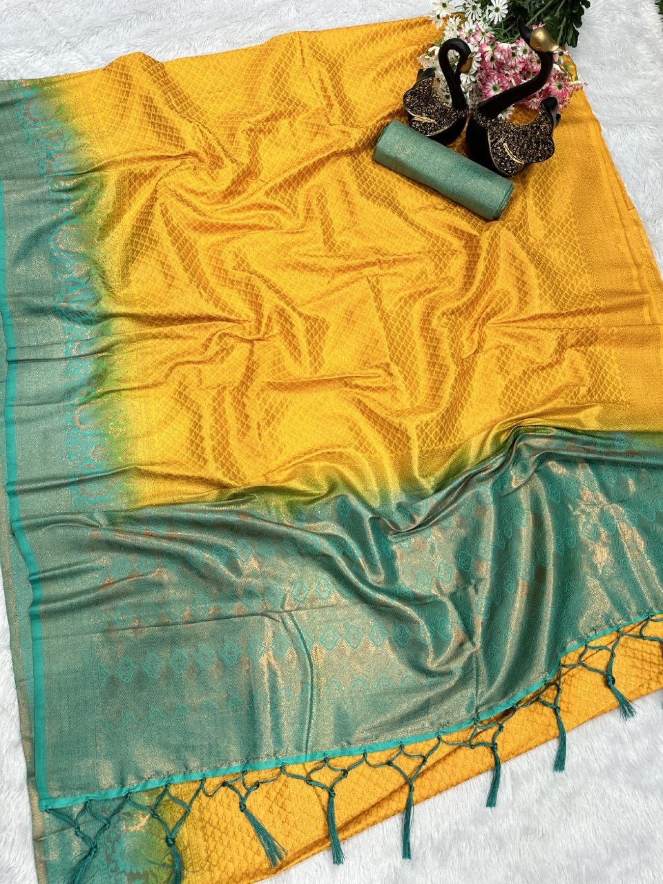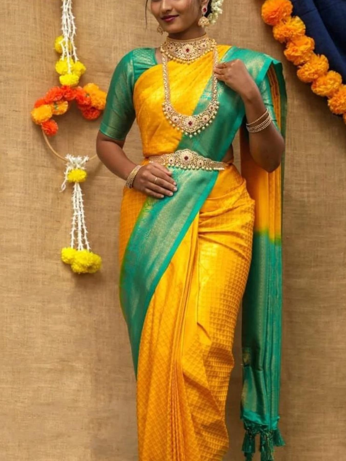 Kubera Pattu Silk Saree Rich Pallu & Brocade Kubera Silk Blouse With Same As Picture Heavy Zaller Attached.