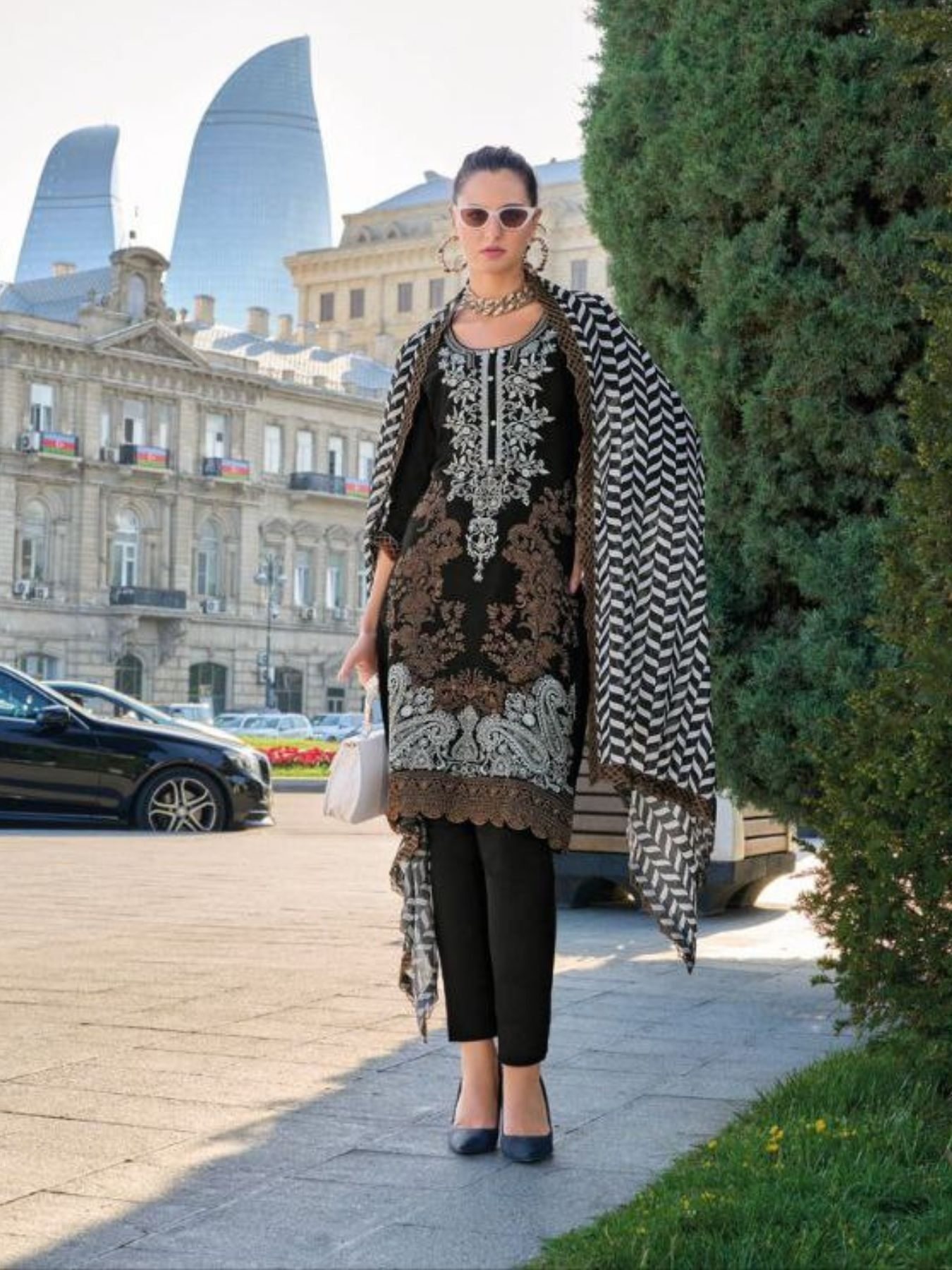 Zaveri Presentiong Black Color Cotton With Embroidery Work Suits