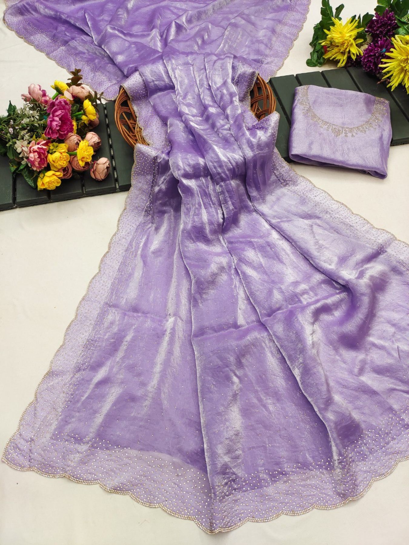 Elegant space silk saree featuring stunning zarkan diamond work for a rich and glamorous look. Paired with a matching unstitched blouse, perfect for weddings, parties, and festive occasions.