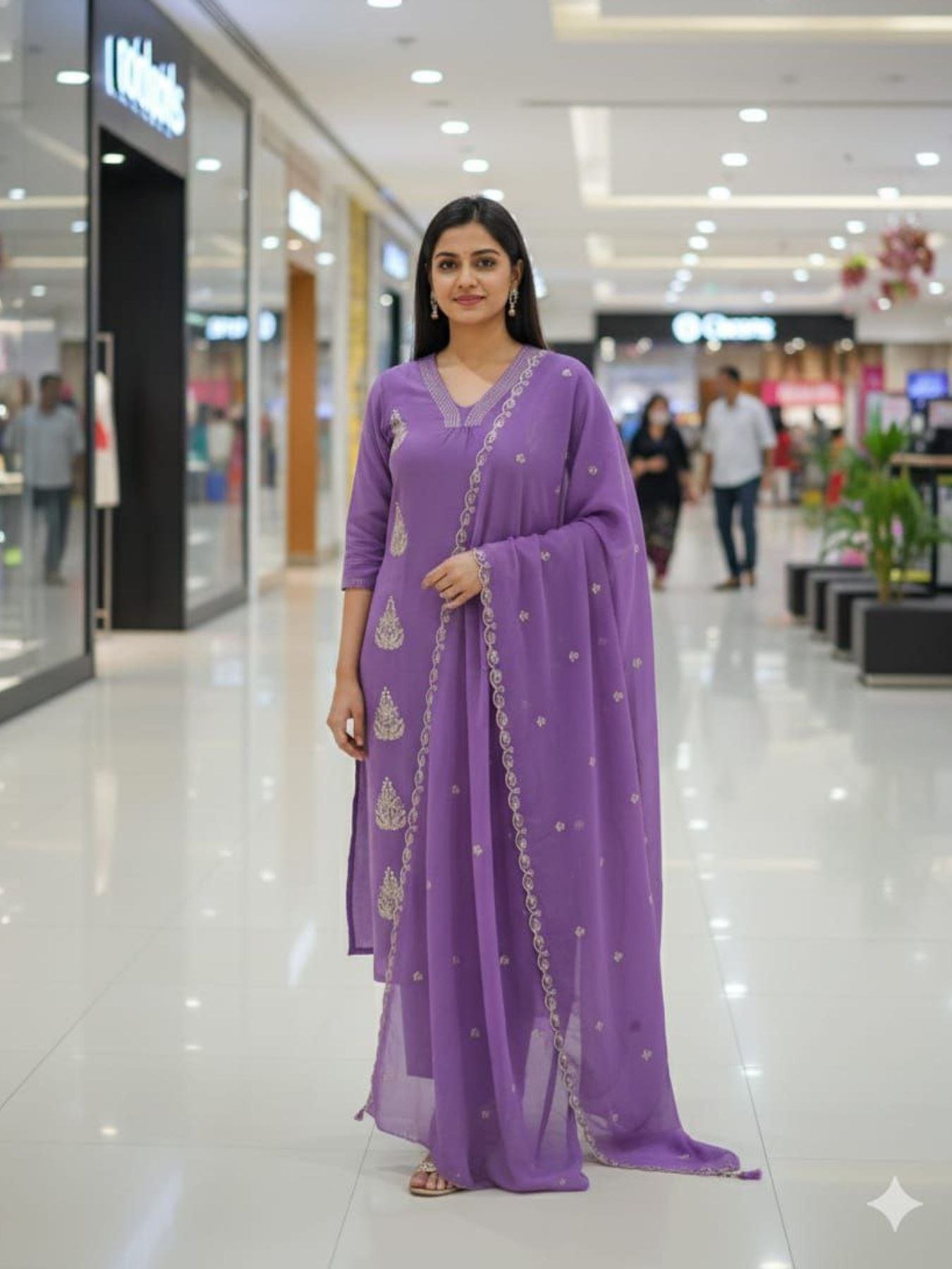 Zephyra Purple Mul Chanderi Suit Set with Khata Work For Office Wear